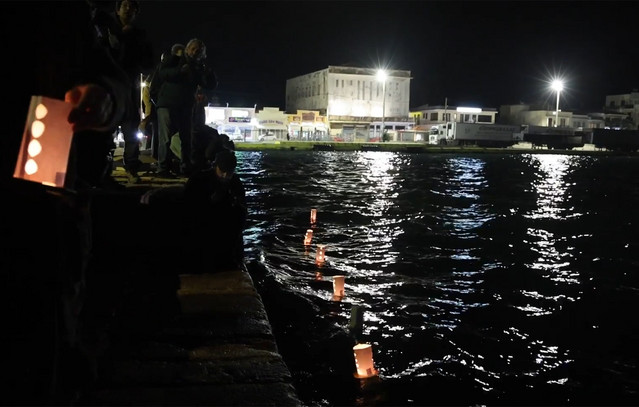 Χίος: Έριξαν φαναράκια στη θάλασσα στη μνήμη των θυμάτων – «Γέμισε η Μεσόγειος κορμιά μεταναστών» φώναζαν διαδηλωτές
