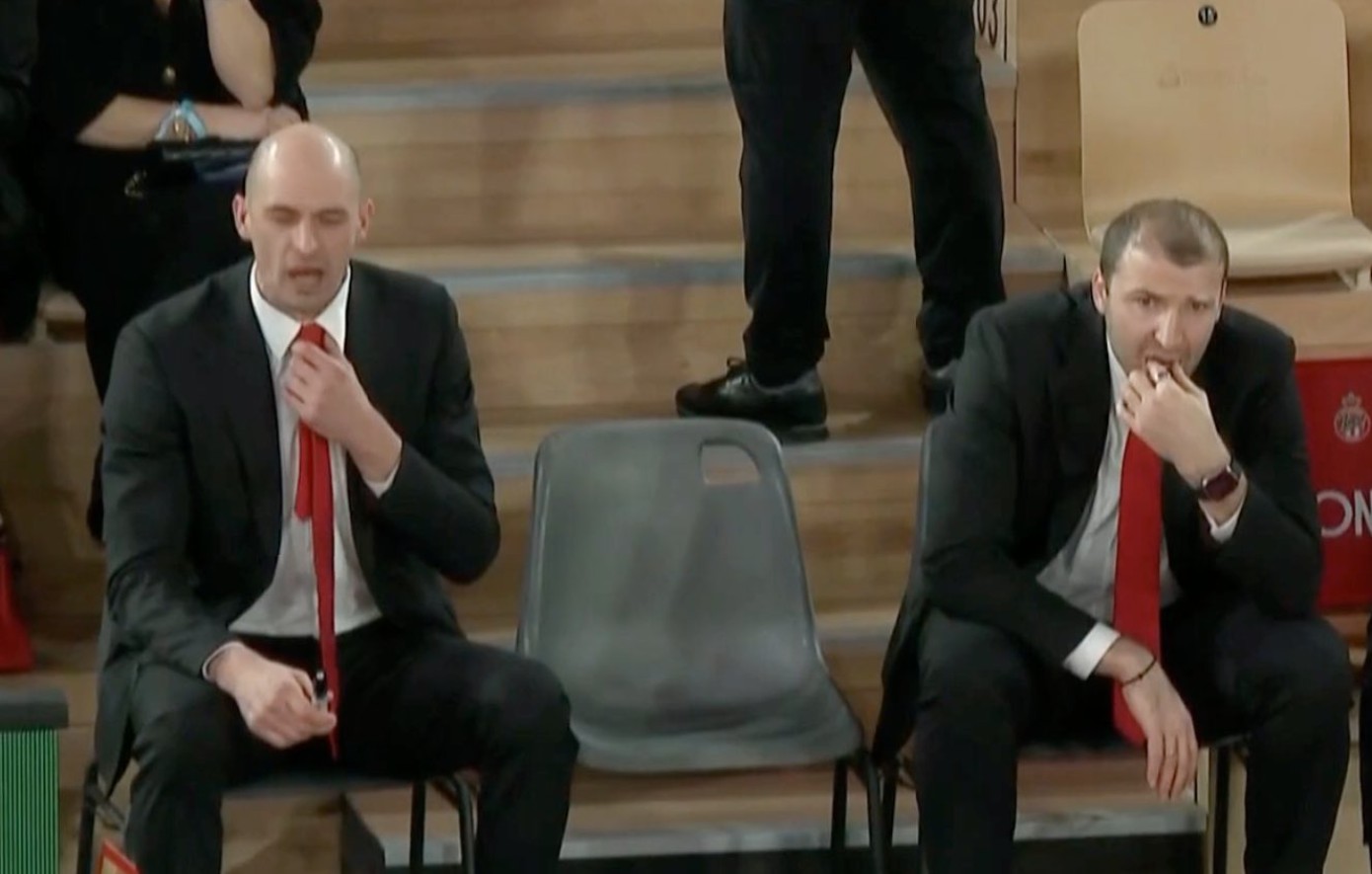 La imagen 📸 del día: el banquillo del @ASMonaco_Basket, sin ‘Kill Bill’ Spanoulis para dirigir el partido de la @Betclic_ELITE frente a @CB_officiel. Sergiy Gladyr se hace cargo de la dirección pic.twitter.com/WoaEkvbEWX