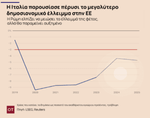 Η Ρώμη στοχεύει να μειώσει το έλλειμμα στο 4,3% φέτος, αλλά έχει ένα θλιβερό ιστορικό πρόσφατα όσον αφορά την επίτευξη των δημοσιονομικών στόχων.
