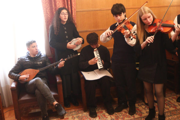 Συγκεκριμένα, τα κάλαντα έψαλαν στον Μακαριώτατο, παιδιά από το Βαφειαδάκειο Ίδρυμα, νέοι και ενήλικες από το Κέντρο Διημέρευσης & Ημερήσιας Φροντίδας ΑμεΑ «Νικόδημος Γραικός», μαθητές από την Ριζάρειο Εκκλησιαστική Σχολή, το Ελληνογαλλικό Δημοτικό Σχολείο «ΔΕΛΑΣΑΛ» Αλίμου και το 74ο Δημοτικό Σχολείο Αθηνών.
