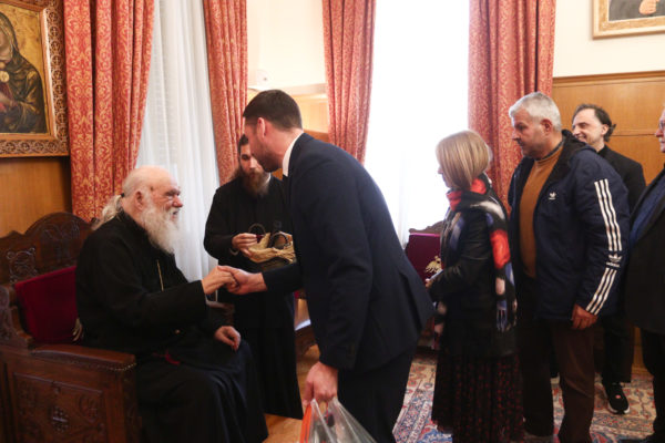 Ο Αρχιεπίσκοπος κ.κ. Ιερώνυμος, υποδέχθηκε όλους με πολλή χαρά, τους ευχαρίστησε, συνομίλησε μαζί τους και ευχήθηκε καλά Χριστούγεννα, υγεία και ειρήνη, ενώ τους προσέφερε και μία συμβολική ευλογία.