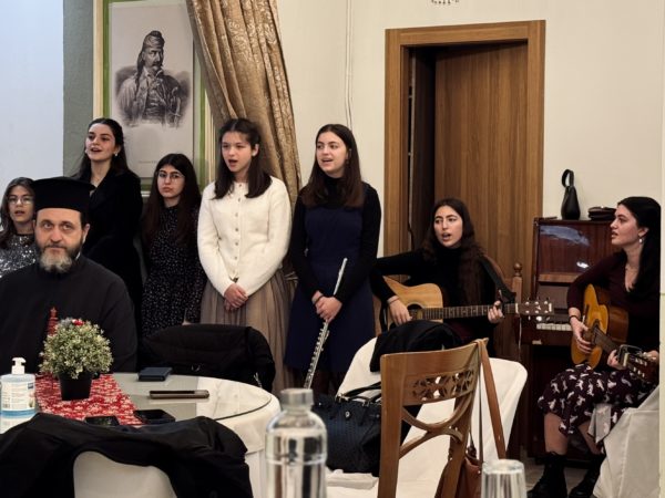 Οι παρευρισκόμενοι απόλαυσαν πλούσια εδέσματα από τον εορταστικό μπουφέ, ενώ το πρόγραμμα πλαισιώθηκε από χριστουγεννιάτικα τραγούδια και κάλαντα, τα οποία απέδωσαν με μελωδικότητα η μικρή χορωδία και η ορχήστρα παιδιών ιερέων.