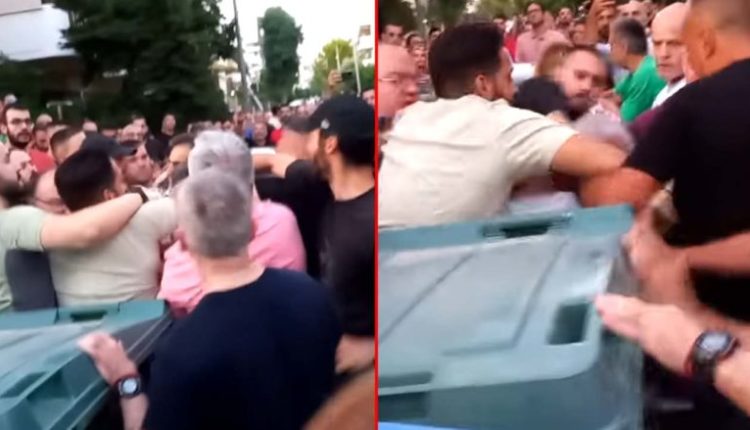 Στη συνέχεια και ενώ οι φωνές συνεχίζονταν, κάποιοι πιάστηκαν στα χέρια και ένας εξ αυτών έριχνε νερό από μπουκάλι και συνέχιζε να χτυπά τους άλλους, με αποτέλεσμα πέντε – έξι άλλοι άνδρες να τον σπρώχνουν παρακάτω, ώστε να λήξει το συμβάν.