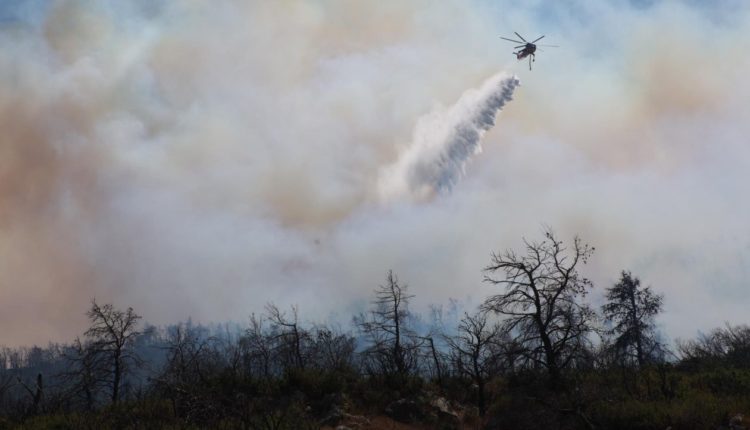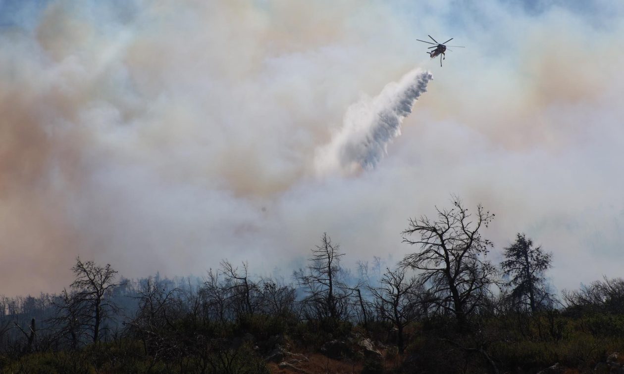 Οι επίγειες δυνάμεις θα παραμείνουν στο πεδίο όλο το βράδυ, συνεχίζοντας το έργο της κατάσβεσης.
