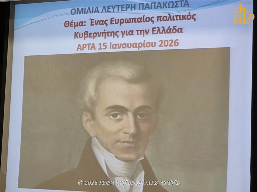 Η Διεύθυνση Πρωτοβάθμιας Εκπαίδευσης (ΔΙ.Π.Ε.) Άρτας, σε συνεργασία με τον Δήμο Αρταίων, την Ιερά Μητρόπολη Άρτας, την ΑΔΑΕ ΟΤΑ και τον Όμιλο Παιδαγωγικών Μελετών, διοργάνωσε διάλεξη, με θέμα: «Ιωάννης Καποδίστριας: Ένας κυβερνήτης για την Ελλάδα».