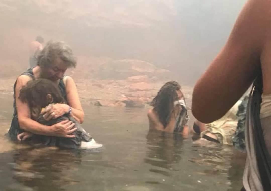 Η κ. Μουτάφη περιέγραψε τις στιγμές που έζησε μέσα στην φουρτουνιασμένη θάλασσα όπου βρέθηκε με τον γιο της Βίκτωρα και την κόρη της Βάσια κυνηγημένοι από την φωτιά και την κάπνα .