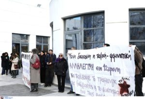 Κατά την αποχώρηση των παραγόντων από το κτίριο, οι συγκεντρωμένοι αλληλέγγιοι στο ανήλικο κορίτσι φώναζαν συνθήματα μεταξύ των οποίων και κάποια για την αποφυλάκιση της κατηγορουμένης μητέρας του θύματος.