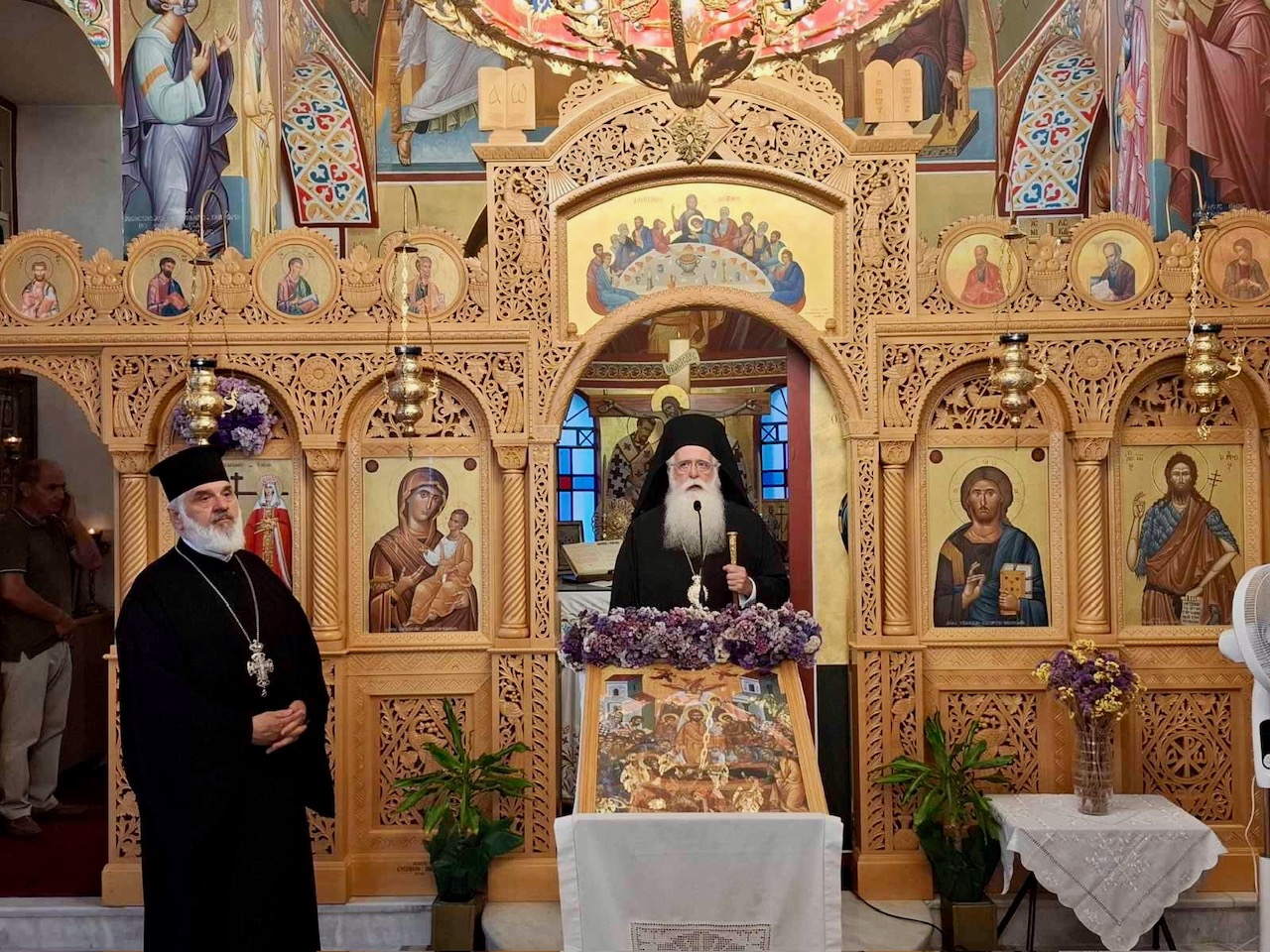 Στο κήρυγμά του ο Σεβασμιώτατος τόνισε πως «…με λαχτάρα οι πιστοί αυτές τις μέρες, οδεύοντας προς τον Δεκαπενταύγουστο, έρχονται στην Εκκλησία, το σπίτι της Παναγίας. Όπως, όταν είμαστε παιδιά, αλλά και σε όλη τη διάρκεια της ζωής μας, με λαχτάρα θέλουμε να πηγαίνουμε στο σπίτι της μάνα μας. Μάλιστα υπάρχουν και αυτοί που τις Κυριακές έχουν καθιερώσει να βρίσκονται στο σπίτι μητέρας τους, για να γευτούν το θαυμάσιο φαγητό που ετοίμασε, όλοι μαζί γύρω από το τραπέζι, και οι γονείς να χαίρονται τα παιδιά και τα εγγόνια τους, δημιουργώντας μια ατμόσφαιρα παραδείσου. Όλοι ξέρουμε πολύ καλά την επίδραση που έχει η φυσική μας μάνα. Και επίσης γνωρίζουμε, πόσο σημαντικό είναι για εκείνους που έχει λείψει η μητέρα από τη ζωή τους. Και έρχεται η Παναγιά, να γίνει η μητέρα όλων των ανθρώπων, να είναι κοντά σε όλους, σε αυτούς που έχουν και σε αυτούς που δεν έχουν».