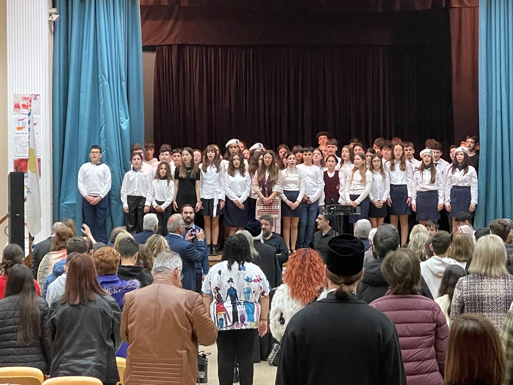 Τον καταληκτήριο λόγο εκφώνησε ο Σεβασμιώτατος Ποιμενάρχης μας κ. Ιγνάτιος, ο οποίος, απευθυνόμενος στους μαθητές, ανέφερε χαρακτηριστικά: «Παιδιά μου, αυτή την ώρα δεν είμαστε μόνοι μας. Δεν είστε μόνο εσείς εδώ. Αυτή την ώρα κάποιες ψυχές που ήταν σαν κι εσάς, μαθητές, είναι μαζί μας. Αφήστε την ψυχή σας να τους νιώσει και να τους ακούσει σας λένε: “Σας ευχαριστούμε που δεν μας ξεχάσατε”. Μάθαμε να αγαπάμε τον Χριστό και την πατρίδα. Μάθαμε να θέλουμε να είμαστε ελεύθεροι και δεν φοβηθήκαμε. Βγήκαμε στον δρόμο για να διεκδικήσουμε την ελευθερία της πατρίδας. Αφήστε τους να σας πουν τι σημαίνει αξιοπρέπεια, τι σημαίνει ελευθερία, τι σημαίνει αγώνας και θυσία. Κοντά μας είναι μορφές όπως ο Αρχιεπίσκοπος Μακάριος Γ΄, που αγωνίστηκε, εξορίστηκε και δεν λύγισε. Η ιστορία μάς διδάσκει, αλλά και μας προειδοποιεί. Οι διχασμοί φέρνουν πληγές. Γι’ αυτό καλούμαστε να προσευχόμαστε και να αγωνιζόμαστε για μια Κύπρο ελεύθερη, για ένα νησί ενωμένο. Εσείς είστε το μέλλον. Εσείς θα παραλάβετε από εμάς ό,τι καλύτερο μπορούμε να σας δώσουμε, για να κάνετε ακόμη καλύτερη την πατρίδα μας. Η ελευθερία, παιδιά μου, έχει και όνομα: είναι ο Χριστός μας. Η πίστη μας και η αγάπη για την πατρίδα είναι αυτά που μας κρατούν και μας σώζουν».