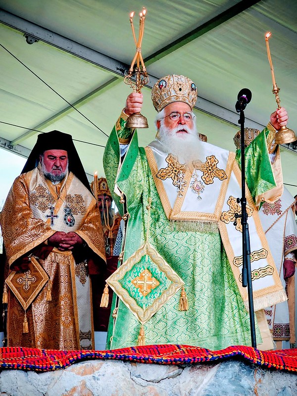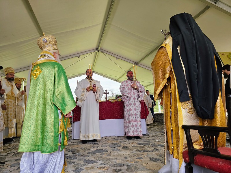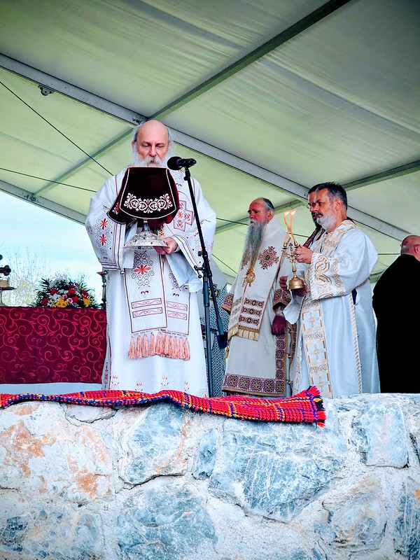 Της υπαίθριας Θείας Λειτουργίας προέστη ο Σεβ. Αρχιεπίσκοπος Ανθηδώνος κ. Νεκτάριος εκ του Πατριαρχείου Ιεροσολύμων, με τη συμμετοχή του Σεβ. Αρχιεπισκόπου Τσετίνιε και Μητροπολίτη Μαυροβουνίου και Παραθαλασσίας κ. Ιωαννικίου, του Σεβ. Μητροπολίτη Δημητριάδος και Αλμυρού κ. Ιγνατίου εκ της Εκκλησίας της Ελλάδος, του Σεβ. Μητροπολίτη Μιχαλουπόλεως και Κόσιτσε κ. Γεωργίου εκ της Εκκλησίας Τσεχίας και Σλοβακίας, του Ποιμενάρχη, Πανιερ. Επισκόπου Πάκρατς και Σλαβονίας κ. Ιωάννου, του Σεβ. Μητροπολίτη Βουδίμλιε και Νίκσιτς κ. Μεθοδίου, του Πανιερ. Επισκόπου Ελβετίας και Αυστρίας κ. Ανδρέου (Πατριαρχείου Σερβίας), του Επισκόπου Ουάσινγκτον, Νέας Υόρκης και Ανατολικής Αμερικής κ. Ειρηναίου, του Επισκόπου Λίπλιαν κ. Δοσιθέου, του Ηγουμένου της Μονής Χιλανδαρίου Αγίου Όρους, Αρχιμανδρίτη Μεθοδίου, του Ηγουμένου της Μονής Σοπότσανι, Αρχιμανδρίτη Θεοκτίστου, του Ηγουμένου της Μονής Ταξιαρχών Πριζρένης, Αρχιμανδρίτη Μιχαήλ και πολλών πατέρων.