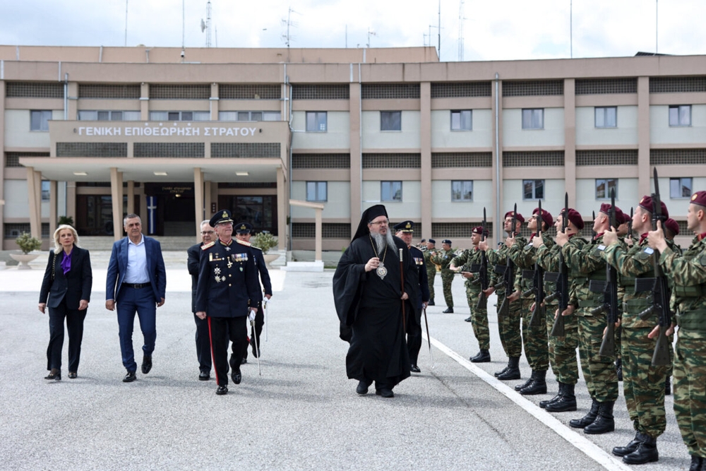 Ο επίσημος εορτασμός της μνήμης του Μεγαλομάρτυρος Αγίου Γεωργίου του Τροπαιοφόρου, προστάτη του Στρατού Ξηράς, πραγματοποιήθηκε σήμερα, Πέμπτη 23 Απριλίου 2026, στην έδρα της Γενικής Επιθεώρησης Στρατού.