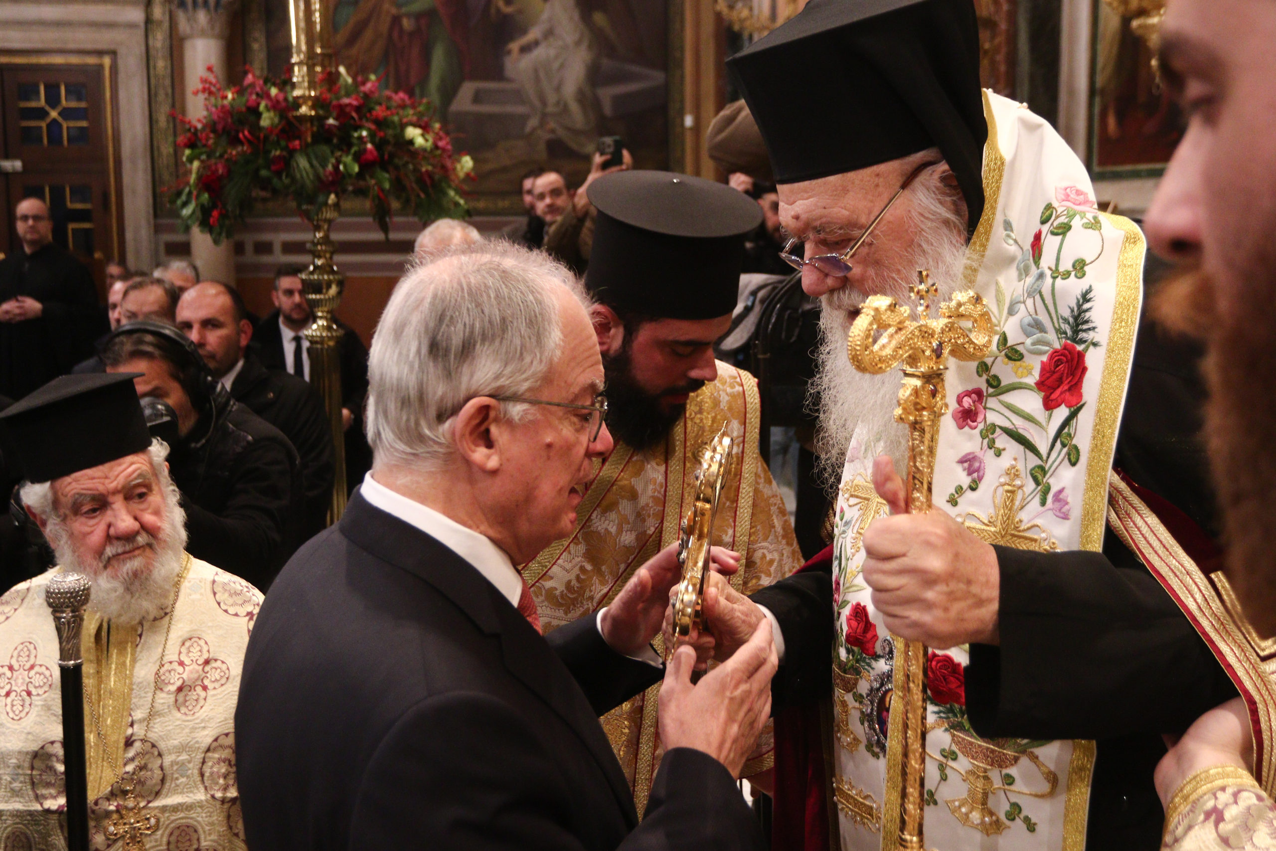 Παρέστησαν, ο Σεβ. Μητροπολίτης Λαοδικείας κ. Θεοδώρητος, Διευθυντής του Γραφείου Εκπροσωπήσεως του Οικουμενικού Πατριαρχείου στην Αθήνα, ο Σεβ. Μητροπολίτης Γουινέας κ. Γεώργιος, Εκπρόσωπος του Πατριάρχη Αλεξανδρείας στην Αθήνα και ο Έξαρχος του Παναγίου Τάφου στην Ελλάδα, Αρχιμανδρίτης Ιερώνυμος.