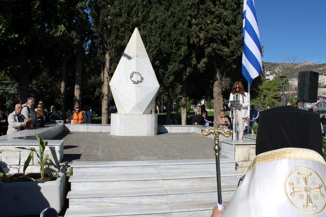 Μετά την δοξολογία ο Σεβασμιώτατος με τους κληρικούς τέλεσαν τρισάγιο υπέρ αναπαύσεως «των εν τοις ιεροίς του Έθνους ημών αγώσι πεσόντων» στο παρακείμενο μνημείο.