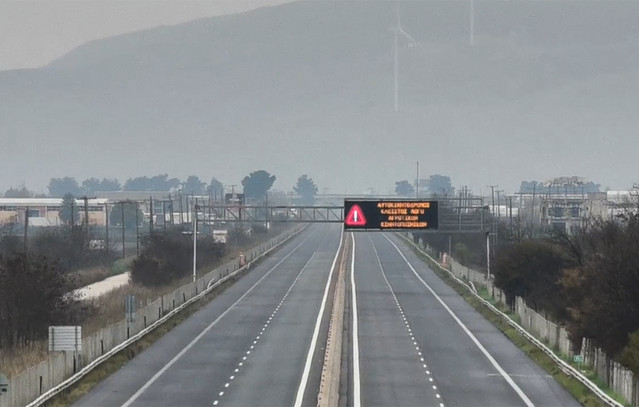 Τα πλάνα από το ύψος του Ύπατου Βοιωτίας, κοντά στη Θήβα, είναι αποκαλυπτικά: Οι λωρίδες κυκλοφορίας της ΠΑΘΕ, που υπό κανονικές συνθήκες σφύζουν από ζωή και κίνηση χιλιάδων οχημάτων καθημερινά, παραμένουν εντελώς άδειες.