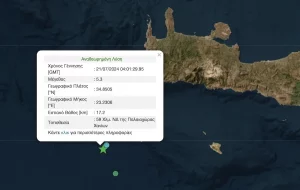 Μέγεθος 5,3 βαθμών της κλίμακας Ρίχτερ είχε ο σεισμός που σημειώθηκε το πρωί της Κυριακής (21/7) στα ανοιχτά της Παλαιόχωρας Χανίων.