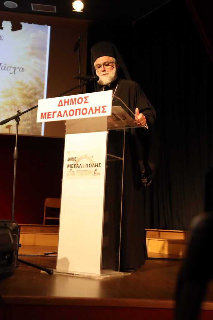 Στο τέλος της εκδήλωσης, ο Σεβασμιώτατος Μητροπολίτης Γόρτυνος και Μεγαλοπόλεως κ. Νικηφόρος τόνισε ότι, «απόψε δεν παρακολουθήσαμε απλώς μια μουσική εκδήλωση. Ζήσαμε μια μυσταγωγία. Οι ιεροί ύμνοι της Εκκλησίας μας, που γεννήθηκαν μέσα από την προσευχή, τη μετάνοια και τη θεολογική εμπειρία των Αγίων Πατέρων, έγιναν για όλους μας δρόμος εσωτερικής αναβάσεως. Κάθε λέξη, κάθε μέλος, κάθε ήχος άγγιξε την ψυχή μας και μας θύμισε ότι η Εκκλησία δεν είναι ένας χώρος απλής εκφράσεως, αλλά τόπος μεταμορφώσεως. Πράγματι, «έαρ» ανέτειλε απόψε στις καρδιές μας. Και το έαρ αυτό δεν είναι απλώς μια φυσική άνοιξη, αλλά η πνευματική άνοιξη που φέρνει ο Χριστός. Είναι η χάρη Του, που διαλύει τον χειμώνα της αμαρτίας, που θερμαίνει την ψυχή, που αναγεννά τον άνθρωπο και τον καλεί σε μια νέα ζωή. Είναι η υπόσχεση ότι μετά τη δοκιμασία έρχεται η λύτρωση, μετά τον Σταυρό η Ανάσταση. Γιατί το «έαρ» της ζωής μας δεν είναι άλλο από τον ίδιο τον Χριστό. Εκείνος που μεταβάλλει τη θλίψη σε χαρά, τον φόβο σε ελπίδα, τον θάνατο σε ζωή. Εκείνος που ανακαινίζει τα πάντα και χαρίζει στον άνθρωπο την προοπτική της αιωνιότητας».