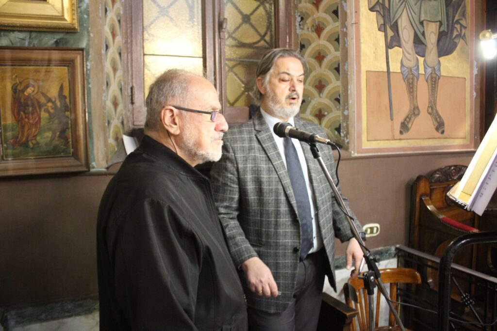 Ο εφημέριος του Ναού, Πανοσιολογιότατος Αρχιμανδρίτης κ. Αθανάσιος, τέλεσε τη Θεία Λειτουργία ενώ στο ψαλτήρι ο Γενικός Πρόξενος κ. Ιωάννης Πυργάκης ανύψωσε τον εσώτερο κόσμο των εκκλησιαζόμενων με τους εξαίρετους βυζαντινούς ύμνους και την αρωγή του εκπαιδευτικού και ιεροψάλτη κ. Αλέξανδρου Μπάση.
