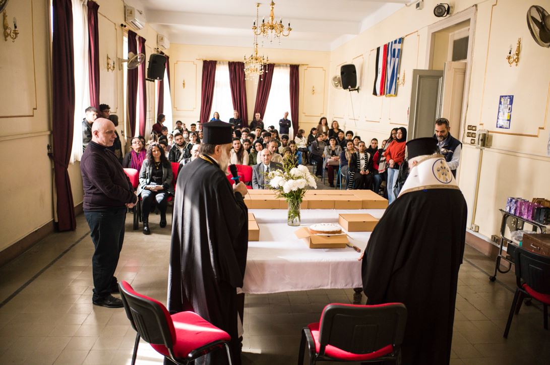 Την Τρίτη 20 Ιανουαρίου πραγματοποιήθηκε η πατροπαράδοτη κοπή της Αγιοβασιλόπιτας στα Ελληνικά Σχολεία του Καΐρου. Η πρώτη αυτή σχολική γιορτή σηματοδότησε την αυγή μιας νέας χρονιάς, δίνοντας σε όλους μας ελπίδα για ένα ακόμη δυναμικό ξεκίνημα.