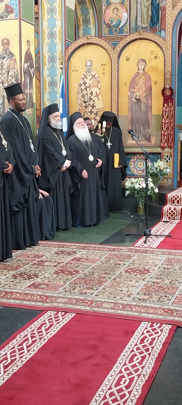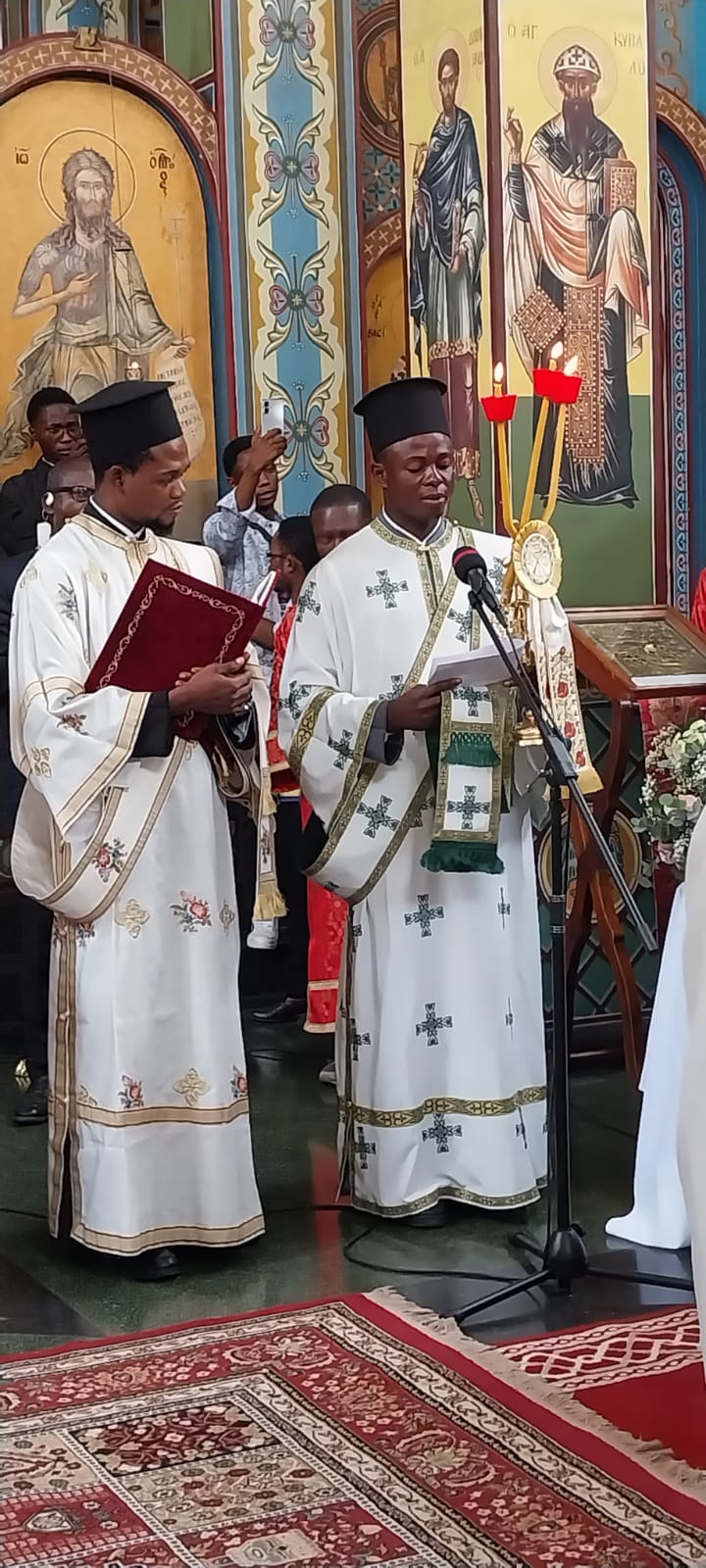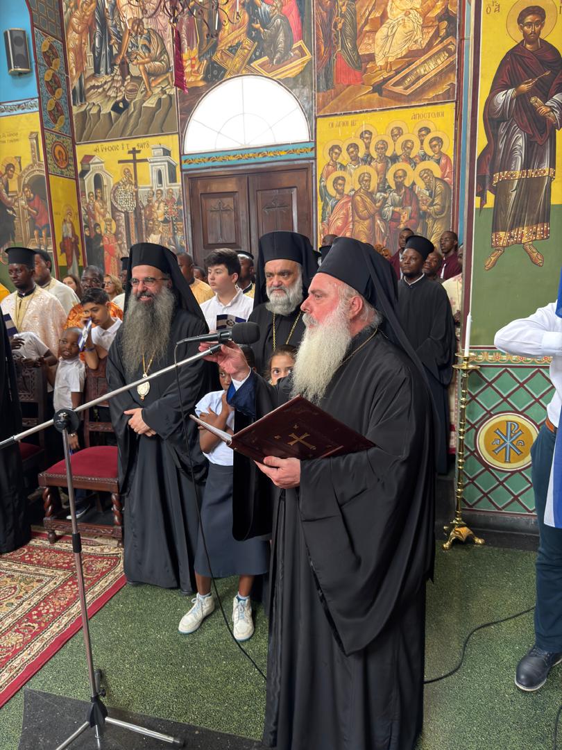 Ο Μακαριώτατος αντιφωνόντας εξέφρασε την χαρά του που για άλλη μία φορά βρίσκεται στην Χώρα του Κονγκό προκειμένου να χαρεί με τα πρόσωπα των πνευματικών του παιδιών. Αφού απηύθυνε λόγους πνευματικής οικοδομής στους παρισταμένους αδελφούς εξέφρασε την ευγνωμοσύνη του Πατριαρχείου προς το πρόσωπο του νεοφανούς Αγίου Χρυσοστόμου του εν Αφρική του μεγάλου και πρωτοπόρου Ιεραποστόλου του οποίου το έργο σε τίποτα δεν υστερεί από το έργο των Αγίων Αποστόλων και Μαθητών του Κυρίου. Επίσης επισήμανε όχι μόνο την καθολική αποδοχή της αγιότητος του Αγίου Χρυσοστόμου Παπασαραντοπούλου και τις πολλαπλές και συνεχόμενες παρακλήσεις Πατριαρχών, Αρχιεπισκόπων και λοιπών Αρχιερέων για την παραλαβή τεμαχίου Αγίου Λειψάνου του Αγίου Χρυσοστόμου.