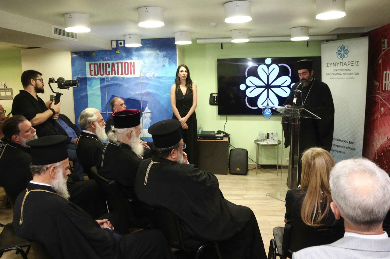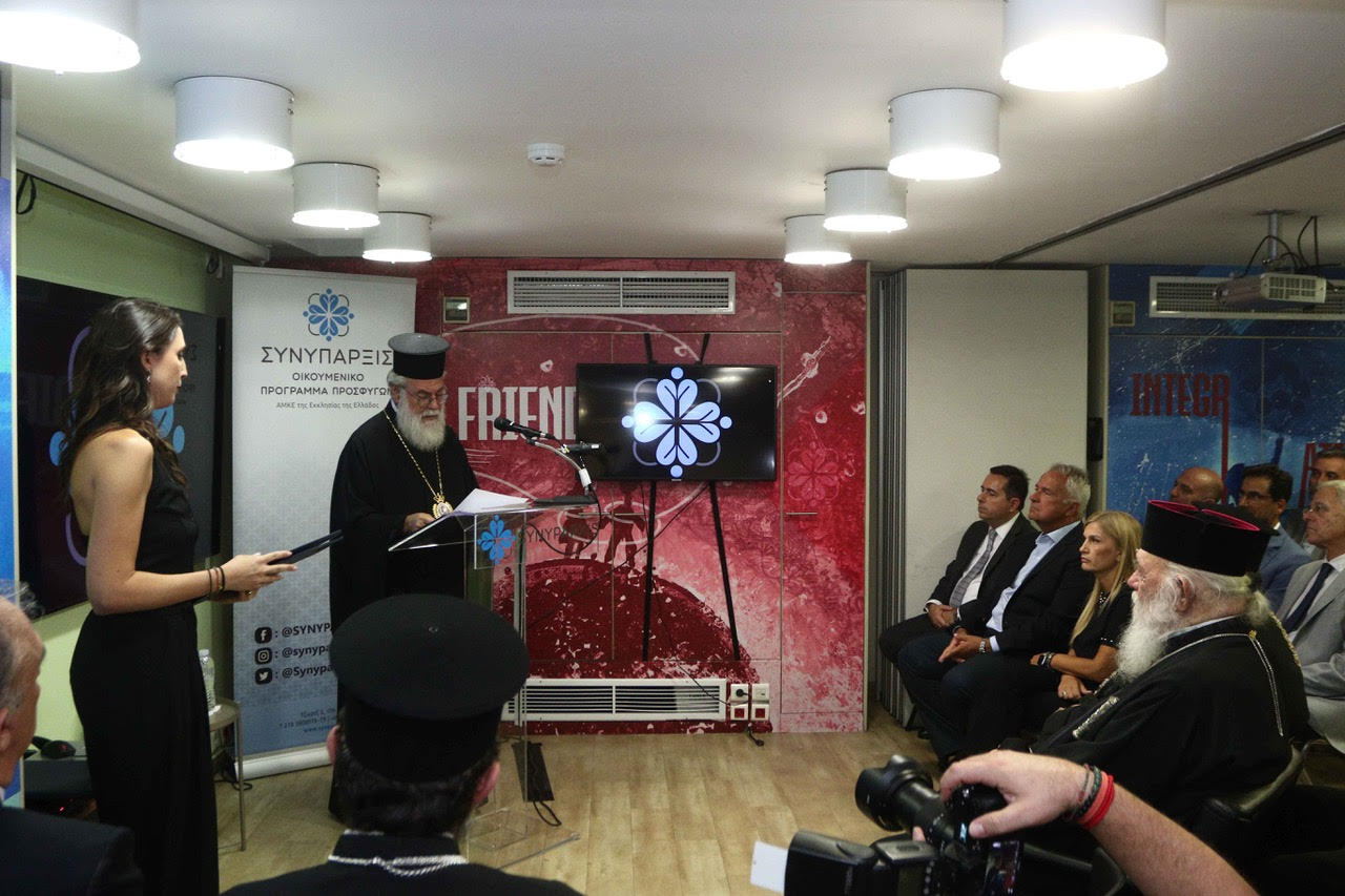 Μετά την ακολουθία του Αγιασμού ο Μακαριώτατος εγκαινίασε τις νέες κτηριακές εγκαταστάσεις και ευχήθηκε καλή δύναμη και επιτυχία στο έργο του φορέα. Κατά την έναρξη της εκδήλωσης, που έλαβε χώρα στην αίθουσα πολλαπλών εκδηλώσεων των εγκαταστάσεων, ο Σεβασμιώτατος Πρόεδρος της “ΣΥΝΥΠΑΡΞΙΣ” κ. Αθηναγόρας έκανε ιστορική αναδρομή στα 48 έτη λειτουργίας του φορέα, τονίζοντας μεταξύ άλλων ότι «δεν υπηρετούμε μόνο τον πρόσφυγα και τον μετανάστη, αλλά και την κοινωνία».