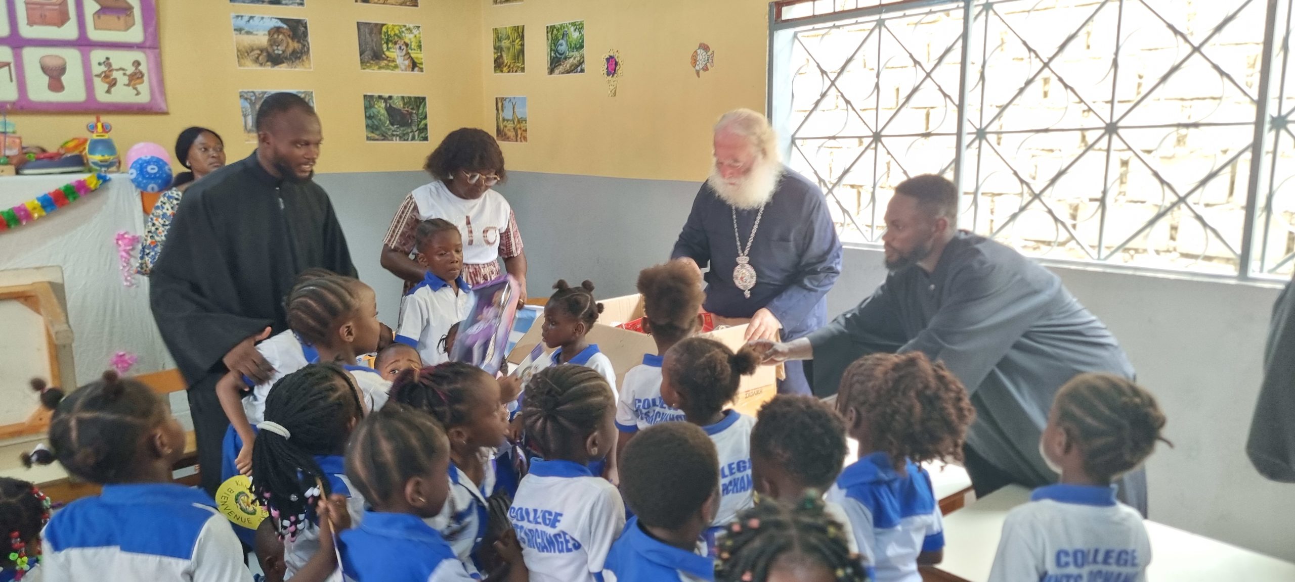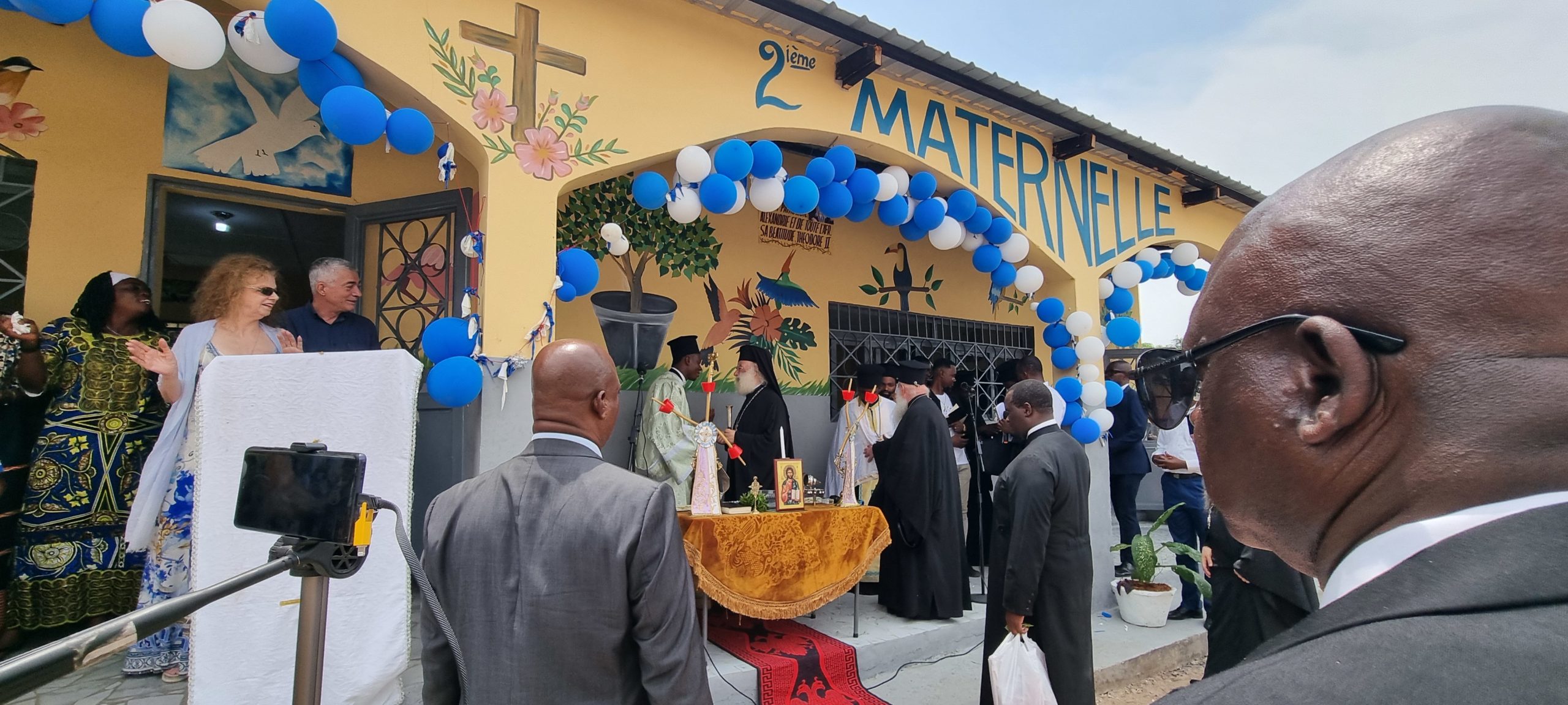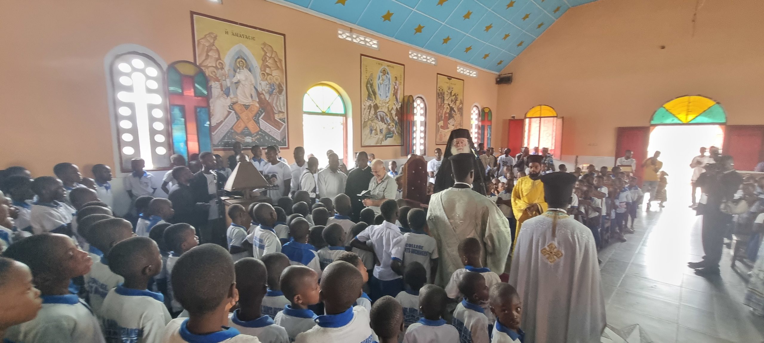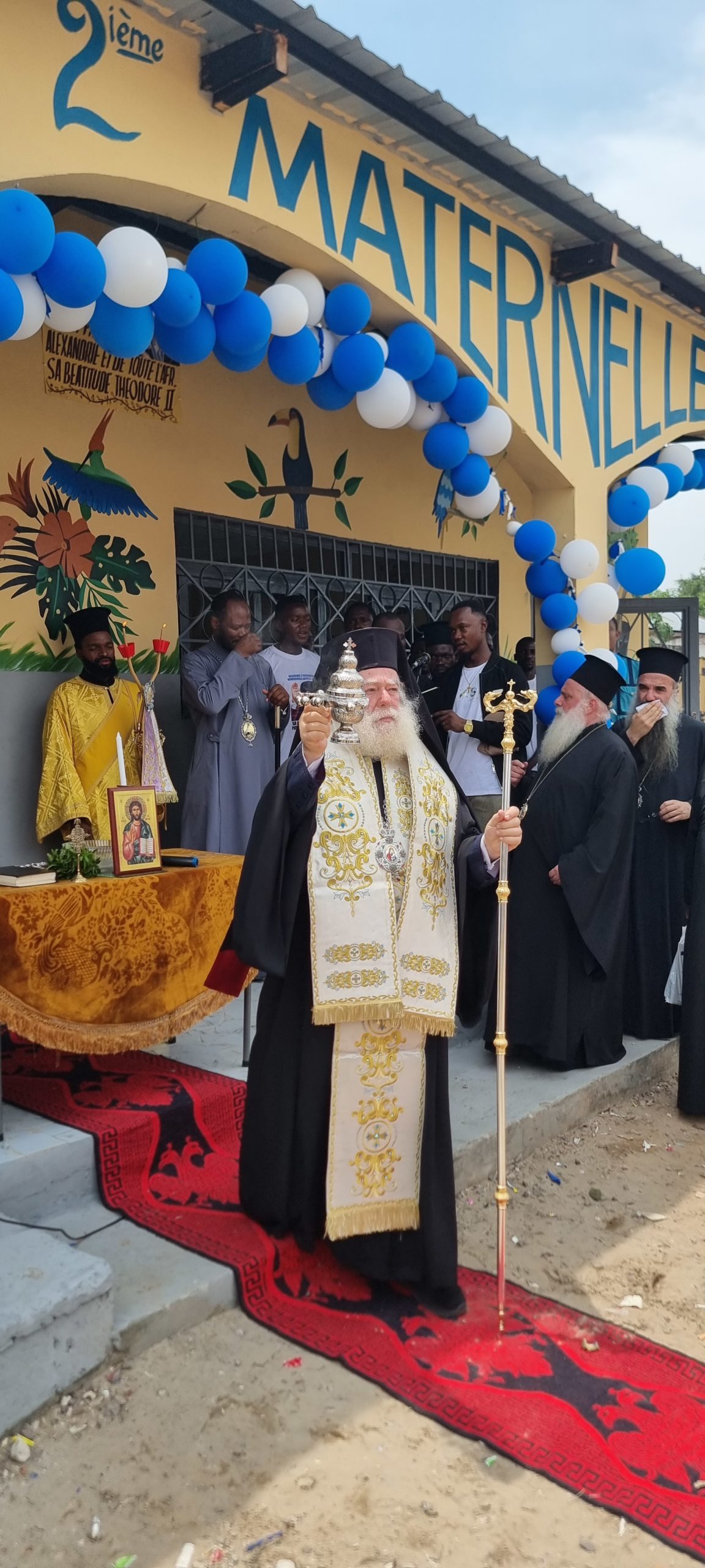 Τόσο οι πιστοί της ενορίας όσο και οι μαθητές του Σχολείου υποδέχθηκαν τον πνευματικό τους πατέρα ζητώντας να λάβουν την ευχή του και να ακούσουν λόγους πνευματικούς και ωφέλιμους από το άγιο του στόμα. Μετά την υποδοχή στον Ναό ο Μακαριώτατος κατευθύνθηκε στο Νηπιαγωγείο όπου τέλεσε τον Αγιασμό και τα Εγκαίνια του Νηπιαγωγείου. Ο Μητροπολίτης Κινσάσας κ Θεοδόσιος αφού αναφέρθηκε με λόγους ευγνωμοσύνης και υιικής αγάπης προς τον Πατριάρχη ανακοίνωσε σε όλους πως το Νηπιαγωγείο αυτό θα φέρει το όνομα του Πατριάρχου Θεοδώρου Β΄.