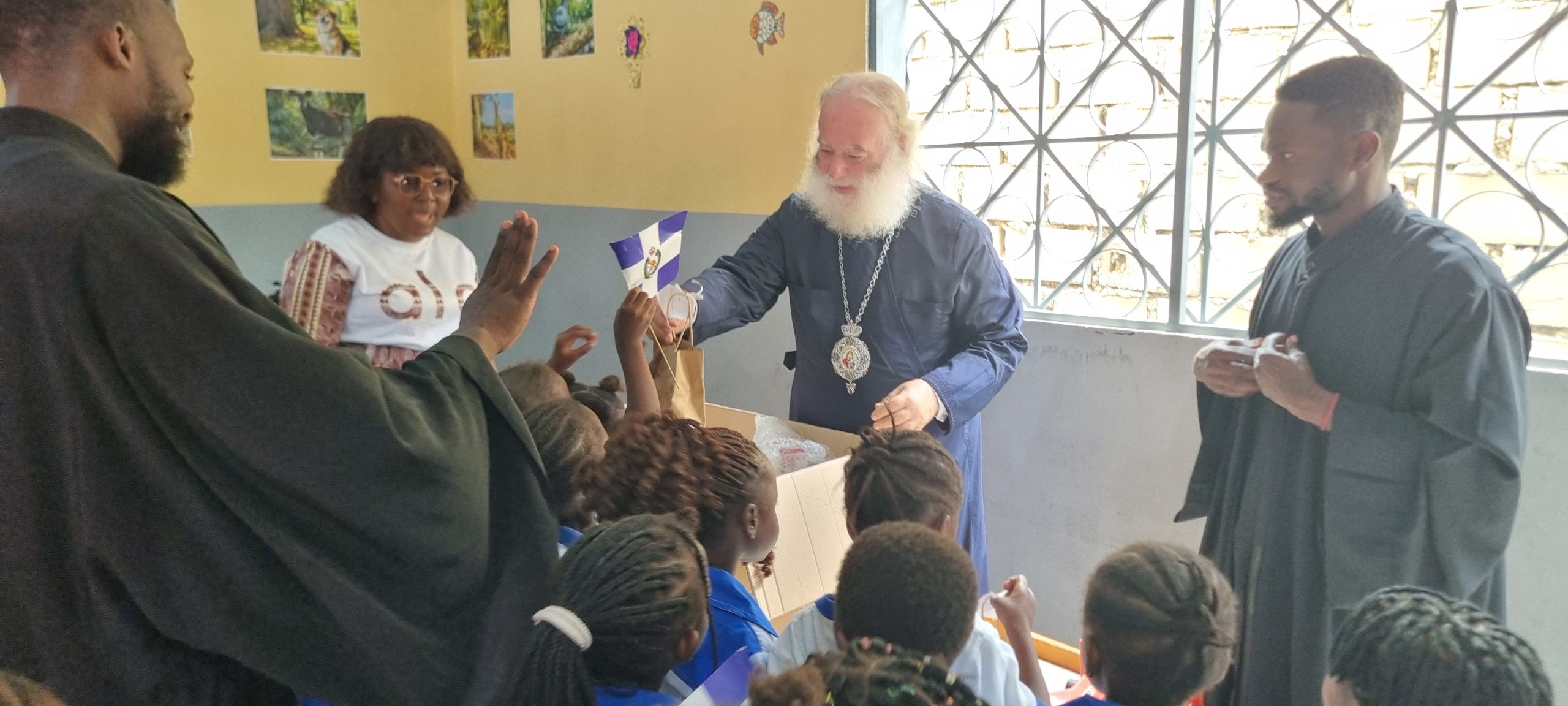 Ο Μακαριώτατος δώρισε παιχνίδια σε όλα τα παιδιά του Νηπιαγωγείου και τετράδια και γλυκίσματα σε όλα τα παιδιά του σχολείου. Νωρίτερα ο Μακαριώτατος επισκέφθηκε την ενορία της Παναγίας «Άξιον Εστί», όπου οι πιστοί τον υποδέχθηκαν με χαρά και συγκίνηση προσφέροντάς του δώρα και εκδηλώνοντας και με αυτόν τον τρόπο την χαρά τους. Ο Μακαριώτατος ενημερώθηκε από τον Μητροπολίτη για το ξεκίνημα της ενορίας, για το έργο της και τις προσπάθειες της και επαίνεσε τον εφημέριο π. Κύριλλο.