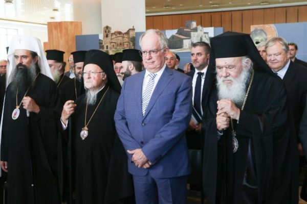 Ο Γραμματέας της Οργανωτικής Επιτροπής του Συνεδρίου και Γενικός Διευθυντής της ΕΜΥΕΕ κ. Αλέξανδρος Κατσιάρας καλωσόρισε τους παρευρισκόμενους στα εγκαίνια της έκθεσης, η οποία συνδιοργανώθηκε από την Ιερά Σύνοδο της Εκκλησίας της Ελλάδος και το Υπουργείο Πολιτισμού και υλοποιήθηκε από το περιοδικό Θεολογία και το Ευρωπαϊκό Κέντρο Βυζαντινών και Μεταβυζαντινών μνημείων σε συνεργασία με τις κατά τόπους Ορθόδοξες Εκκλησίες των Βαλκανίων. «Η συνεργασία αυτή ανέδειξε την κοινή μας εκκλησιαστική παράδοση και κατέστησε δυνατή την πραγματοποίηση της εκθέσεως που εγκαινιάζουμε σήμερα» σημείωσε ο κ. Κατσιάρας και ευχαρίστησε την Υπουργό Πολιτισμού, κ. Λίνα Μενδώνη, η οποία προτού ακόμη αναπτύξει πλήρως την ιδέα αυτής της εκθέσεως, είπε “Ναι”, χωρίς δεύτερη σκέψη και η οποία λόγω των υποχρεώσεών της στο εξωτερικό δεν μπόρεσε να παραστεί.