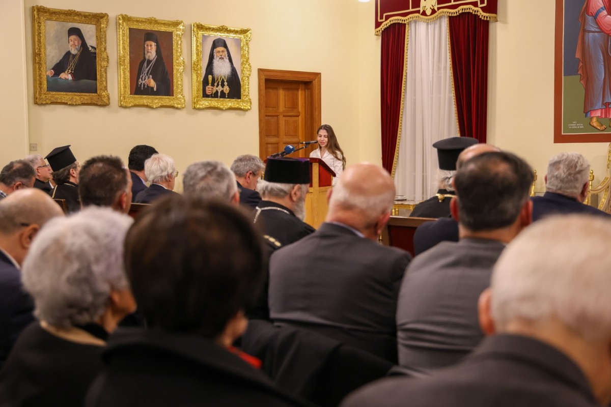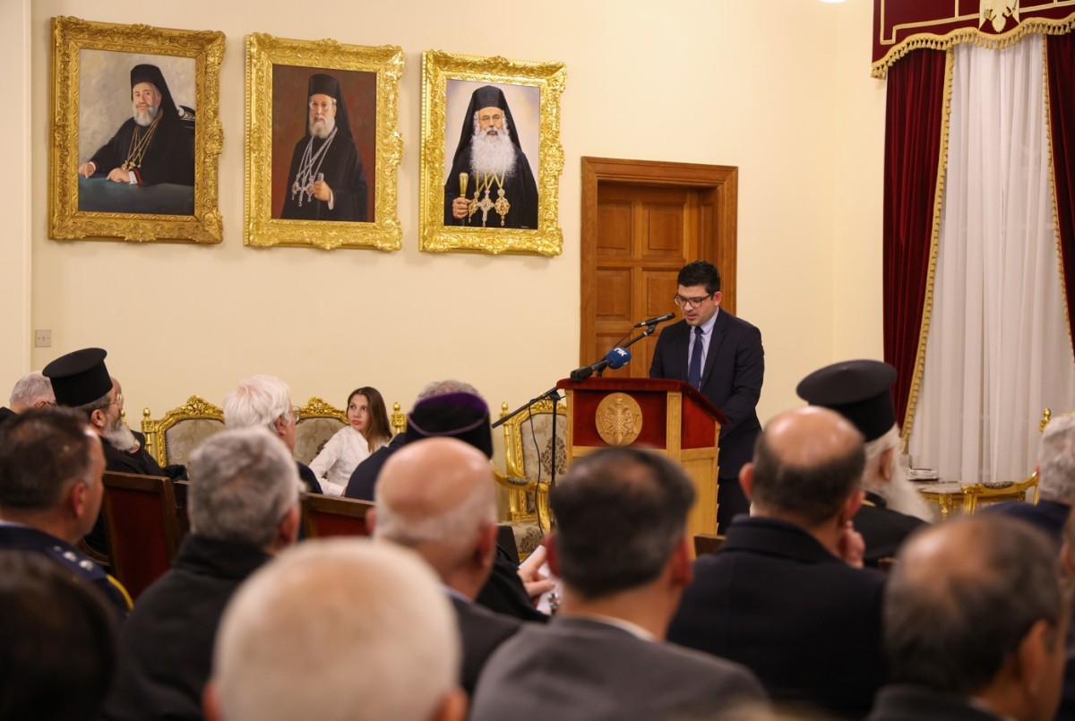 Στο πλαίσιο του χαιρετισμού, τον οποίον απηύθυνε εκ μέρους του Προέδρου της Δημοκρατίας κ. Νίκου Χριστοδουλίδη, ο κ. Μαρίνος Μουσιούττας εξήρε την πολυδιάστατη σημασία της προσωπικότητας και της δράσης του Εθνάρχη Μακαρίου, στον εκκλησιαστικό, στον κοινωνικό, στον οικονομικό, στον εκπαιδευτικό, στον ιεραποστολικό και στον εθνικό τομέα. Τέλος, προβάλλοντας το χθες στο σήμερα τόνισε: «Έχοντας τις παρακαταθήκες του Εθνάρχη Μακαρίου ως γνώμονα και ακολουθώντας τον δρόμο που χάραξε, μέσα από τον πολιτικό διάλογο, τις συνομιλίες και τον διεκδικητικό ρεαλισμό, ο Πρόεδρος της Δημοκρατίας κ. Νίκος Χριστοδουλίδης εργάζεται άοκνα και μεθοδικά για την επανέναρξη των διαπραγματεύσεων για επίλυση του Κυπριακού. Όπως ο ίδιος έχει επανειλημμένα υπογραμμίσει, μοναδικός στόχος είναι η απελευθέρωση και η επανένωση της Κύπρου, στη βάση του συμφωνημένου πλαισίου και των σχετικών ψηφισμάτων των Ηνωμένων Εθνών και των αρχών και αξιών της Ευρωπαϊκής Ένωσης».