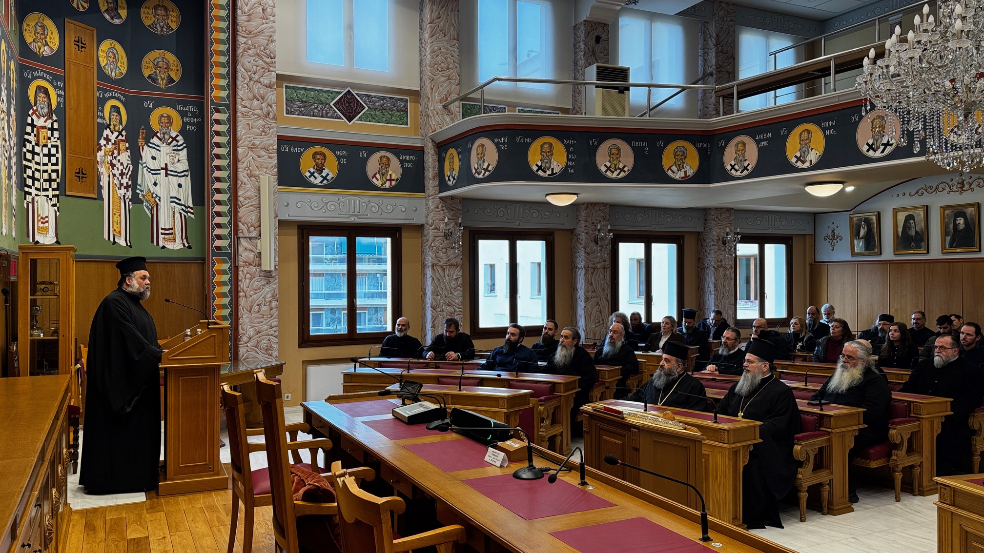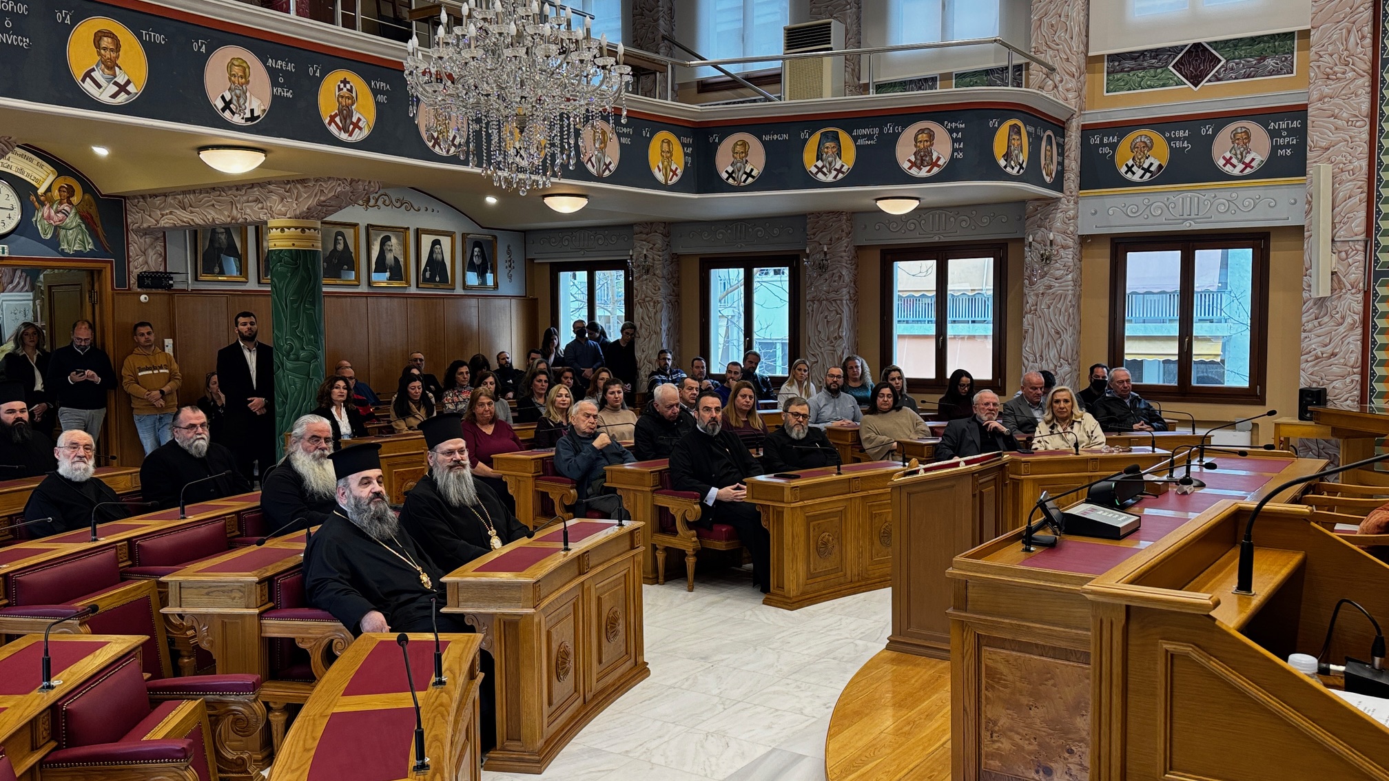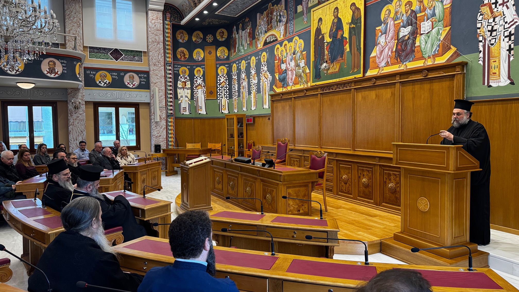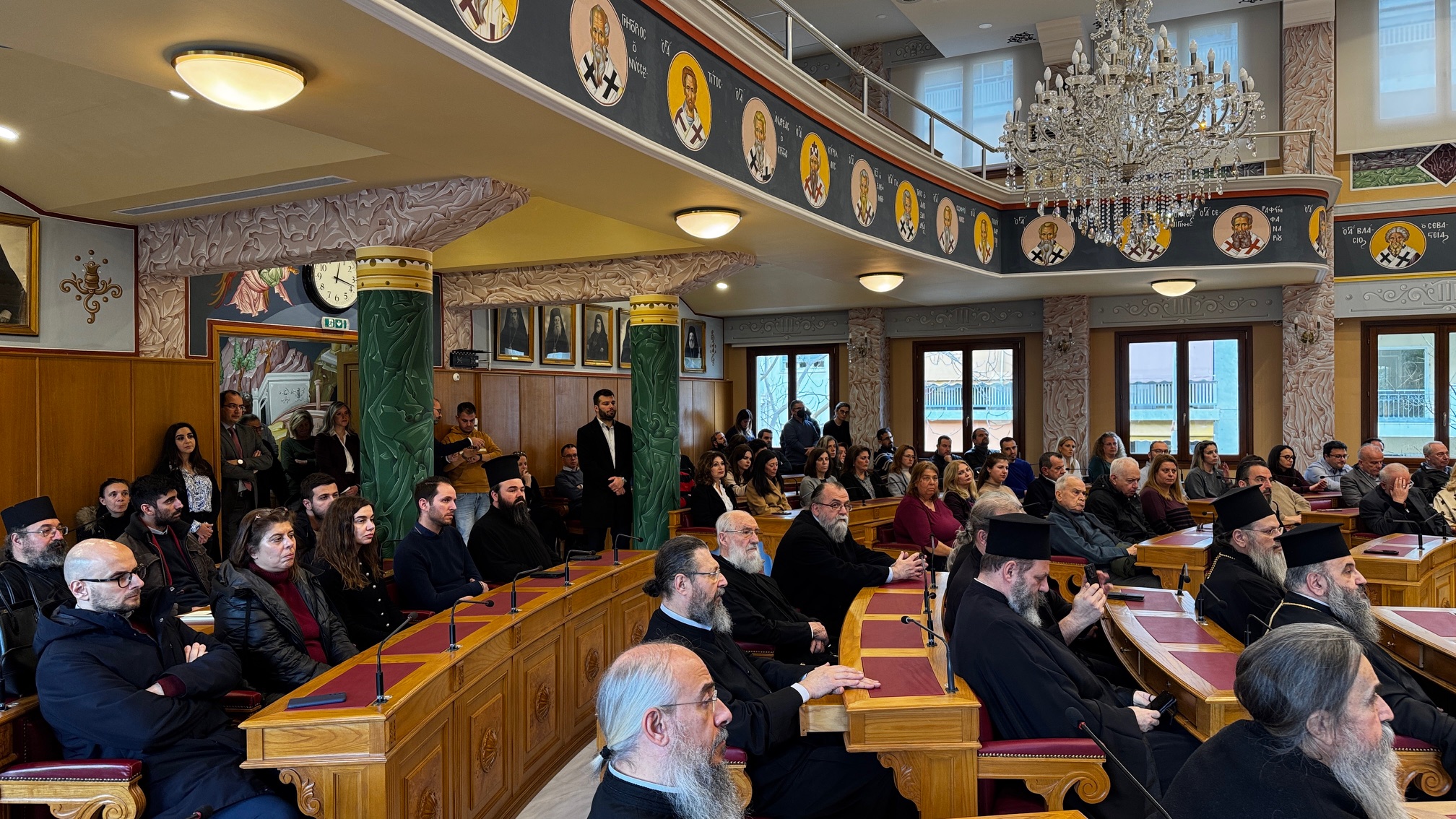 Σε αυτήν παρέστησαν ο Αρχιγραμματεύς της Ιεράς Συνόδου της Εκκλησίας της Ελλάδος, Θεοφιλέστατος Επίσκοπος Σκιάθου κ. Ιωάννης, ο Θεοφιλέστατος Επίσκοπος Επιδαύρου κ. Νικόδημος, Γενικός Διευθυντής της ΕΚΥΟ, ο Διευθυντής Δημοσιονομικού Ελέγχου κ. Διονύσιος Γιαννακόπουλος, ο Διευθυντής του Ιστορικού Αρχείου της Εκκλησίας της Ελλάδος, Καθηγητής κ. Νικόλαος Τόμπρος, κληρικοί και λαϊκοί συνοδικοί υπάλληλοι όλων των Συνοδικών Υπηρεσιών.