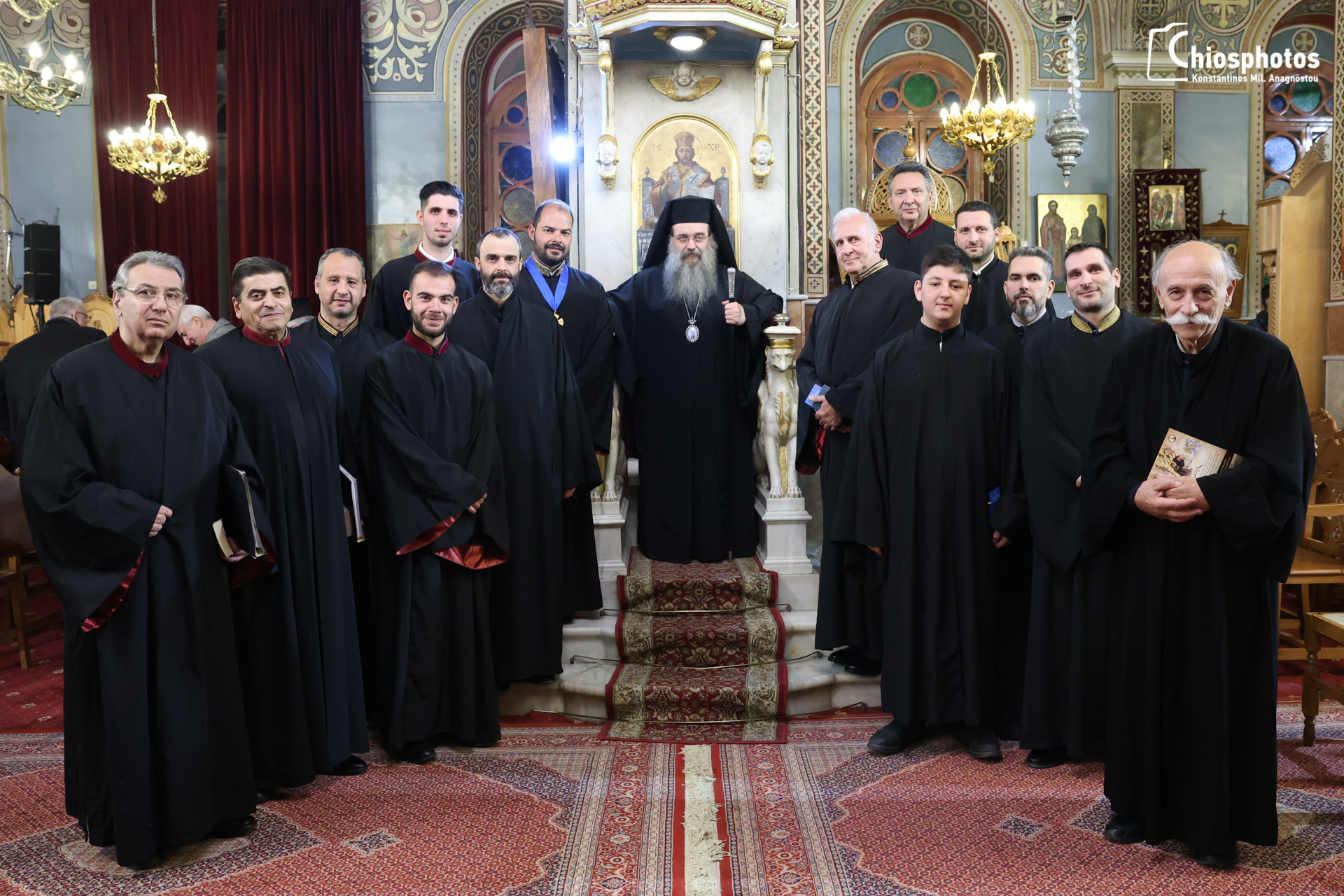 Η χορωδία των μαθητών της Σχολής Βυζαντινής Εκκλησιαστικής Μουσικής της Ιεράς Μητροπόλεως με τη Διεύθυνση του Καθηγητή Βυζαντινής Μουσικής της Σχολής κ. Σταύρου Στείρου, Καθηγητή Μουσικής και Πρωτοψάλτη του Ιερού Ναού Αγίου Μάρκου Βροντάδου και η χορωδία των μαθητών του “Διονυσιείου” Μουσικού Σχολείου Χίου με την Διεύθυνση του κ. Αθανασίου Ξενούδη, Πρωτοψάλτη του Ι. Ναού Οσίας Ξένης Θεσσαλονίκης και Καθηγητή Βυζαντινής και Παραδοσιακής Μουσικής, έψαλαν μελωδικά επίκαιρους εκκλησιαστικούς ύμνους των Χριστουγέννων, αφήνοντας πολλές υποσχέσεις για το μέλλον.