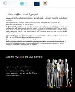 Τo @iamnotadoll_project© είναι διαδραστική καλλιτεχνική έκθεση, δημιουργία της κ. Ιωάννας Παρασκευά (καλλιτέχνη), η οποία, με έναν ιδιαίτερο και φιλικό τρόπο, μέσω της τέχνης, στοχεύει να παρακινήσει όλους μας, και κυρίως τους νέους, να ενημερωθούν και να ενημερώσουν, συμμετέχοντας σε μια προσπάθεια καταπολέμησης κάθε μορφής βίας, έμφυλης βίας, εκμετάλλευσης και επιβλαβών πρακτικών, που πλήττουν βασικά ανθρώπινα δικαιώματα.