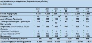 Ακόμη πρέπει να σημειωθεί πως το ποσό των 3,634 δισ. ευρώ είναι το υψηλότερο από το 2017, καθώς στα επόμενα χρόνια οι ληξιπρόθεσμες οφειλές μειώθηκαν μέχρι και τον Δεκέμβριο του 2021, για να ακολουθήσει η έκρηξή τους, από το 2022 και μετά. Από τα αναλυτικά στοιχεία του Γενικού Λογιστηρίου του Κράτους προκύπτει πως: