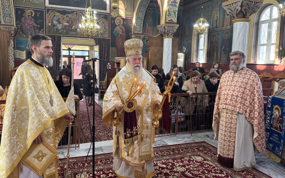 Τέλος, ο Σεβασμιώτατος ευχήθηκε στους παρισταμένους, με υγεία και πνευματική δύναμη, να διαπλεύσωμε το πέλαγος της ιεράς αυτής περιόδου της Αγίας και Μεγάλης Τεσσαρακοστής και, με τη χάρη του Θεού, να καταντήσωμε αισίως στο λιμάνι της Αναστάσεως, το Άγιο Πάσχα. Μετά το τέλος της Θείας Λειτουργίας μετέβησαν στον προαύλιο χώρο του Ιερού Ναού, όπου ετέλεσε τρισάγιο στον τάφο του αειμνήστου Πρωτοπρεσβυτέρου π. Πέτρου Γιαρισκάνη, επί πολλά έτη εφημερίου του Ναού.