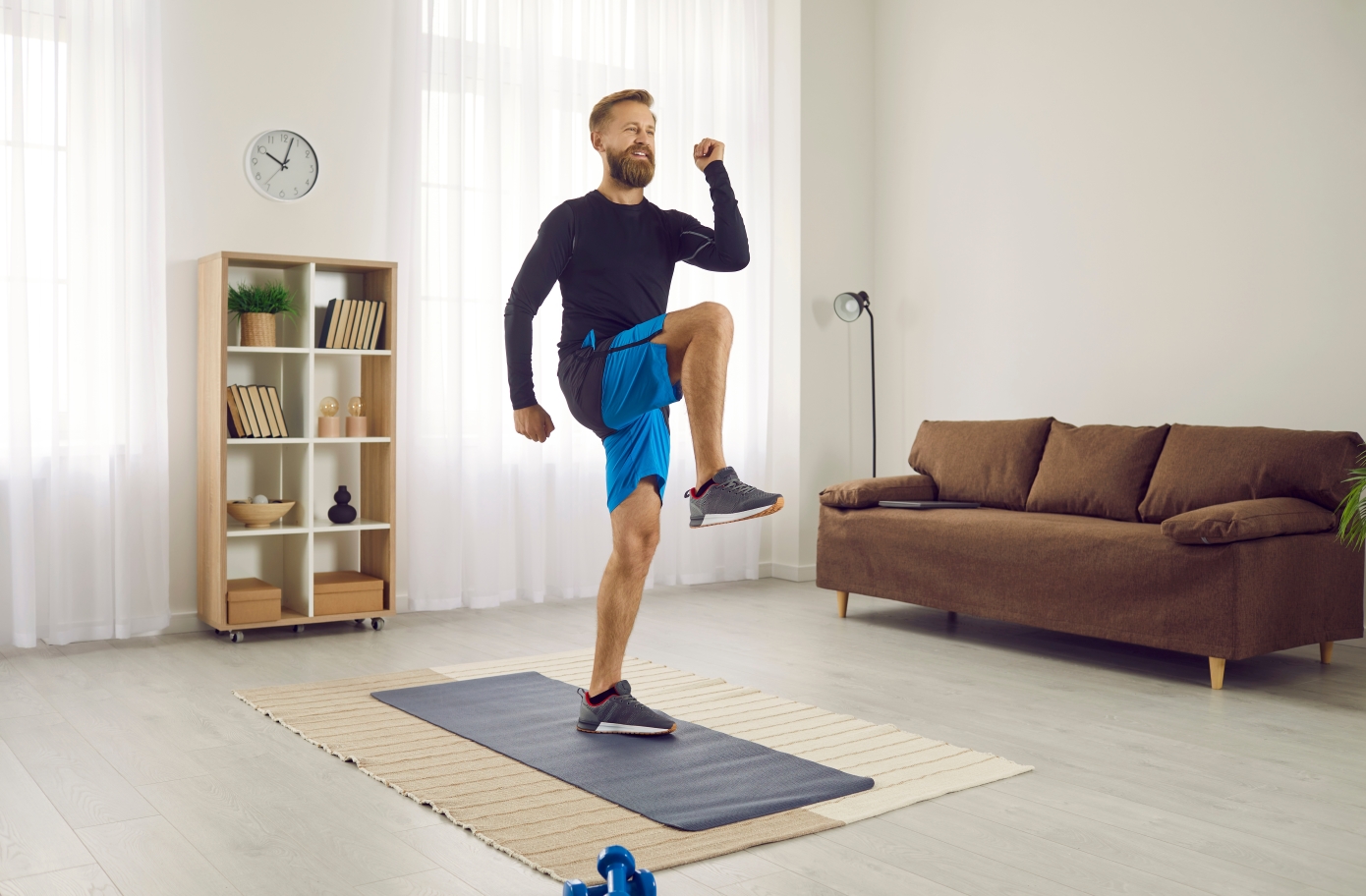 Πώς να την κάνετε: Σταθείτε όρθιοι με τους ώμους πίσω και τον κορμό ενεργό. Σηκώστε το ένα γόνατο στο ύψος του ισχίου καθώς προχωράτε. Κινήστε δυναμικά το αντίθετο χέρι. Εναλλάξτε πόδια με έλεγχο για 30 έως 60 δευτερόλεπτα, ανάλογα με το επίπεδό σας. Ξεκουραστείτε λίγο και επαναλάβετε για 3–4 κύκλους