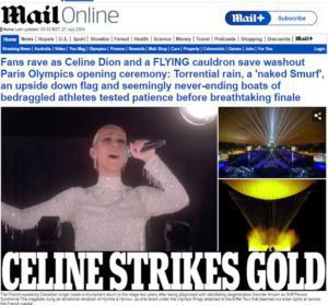 Αλλά και η Daily Mail είδε το εγχείρημα των Γάλλων ως ένα «ξεπλυμένο σόου στον Σηκουάνα» από το οποίο απέμεινε ένα «γυμνό στρουμφάκι» που παρίστανε τον θεό Διόνυσο και μια σημαία κρεμασμένη ανάποδα. Τα μόνα εντυπωσιακά στοιχεία που εντόπισε το βρετανικό μέσο ήταν ο ιπτάμενος βωμός με τη φλόγα και η πολύ δυνατή ερμηνεία της Γαλλοκαναδέζας τραγουδίστριας.