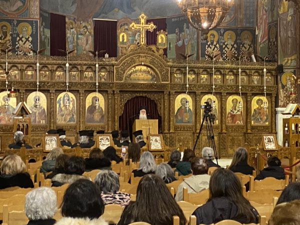 Στο τέλος της Ακολουθίας, ο Σεβασμιώτατος εγκαινίασε τη σειρά των κατανυκτικών ομιλιών του με θέμα: «Σπουδή στο Κατά Λουκάν Ευαγγέλιο – Η αποστολή των εβδομήκοντα μαθητών – Ο Ιησούς ελέγχει τις αμετανόητες πόλεις – Η επιστροφή των εβδομήκοντα μαθητών (κεφ. 10, 1-20)».
