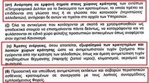Ζητείται ακόμη να γίνουν «άμεσες ενέργειες όπου απαιτείται εξωραϊσμού των κρατητηρίων και λοιπών χώρων κράτησης, ώστε να αντιμετωπιστούν τυχόν ζητήματα που εγείρονται με την κράτηση των αλλοδαπών και άμεση αντιμετώπιση τυχόν προβλημάτων θέρμανσης (παροχής ζεστού νερού), κλιματισμού, αερισμού, φωτισμού.