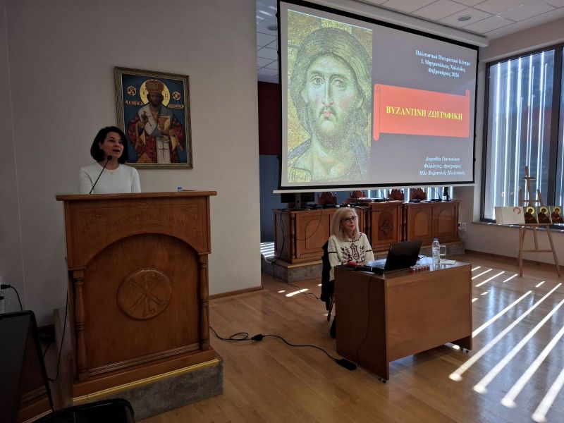 Η αγιογράφος κ. Δωροθέα Γιαννούκου, από την πρώτη στιγμή, κατάφερε να κερδίσει την προσοχή όλων των παιδιών και με τρόπο προσιτό σε αυτά, τα έφερε σε επαφή με την ιστορία και τις τεχνικές της βυζαντινής ζωγραφικής και συζήτησε μαζί τους για τις καταβολές, τη διάδοση και την επιβίωση, έως σήμερα, της αγιογραφίας. Επίσης, τους έδειξε και εξήγησε τις φάσεις ετοιμασίας και κατασκευής μιας ιερής εικόνας και ξενάγησε τα παιδιά με τον τρόπο της διάδρασης στα υλικά που υπάρχουν στο εργαστήρι του αγιογράφου. Ιδιαίτερο ενθουσιασμό και ικανοποίηση προκάλεσε σε όλα τα παιδιά η κατασκευή μιας εικόνας της Παναγίας, την οποία ζωγράφισαν ανακαλώντας στο νου τους τις πληροφορίες που έλαβαν και ακολουθώντας τις οδηγίες της κ. Γιαννούκου.
