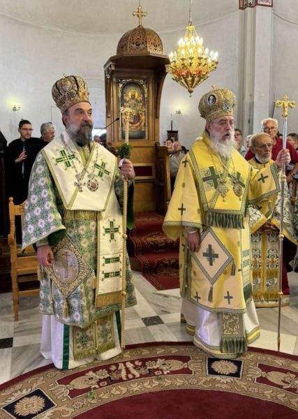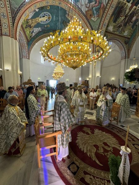 Το Σάββατο 13 Σεπτεμβρίου, παραμονή της εορτής, τελέστηκε ο Μέγας Πανηγυρικός Αρχιερατικός Εσπερινός, στον οποίο χοροστάτησε ο Σεβασμιώτατος Μητροπολίτης Λαγκαδά, Λητής και Ρεντίνης κ. Πλάτων. Συγχοροστάτησαν οι Σεβασμιώτατοι Μητροπολίτες Μεσσηνίας κ. Χρυσόστομος, Κηφισίας, Αμαρουσίου και Ωρωπού κ. Κύριλλος και ο οικείος Ποιμενάρχης, Σεβασμιώτατος Μητροπολίτης Θήρας, Αμοργού και Νήσων κ. Αμφιλόχιος.
