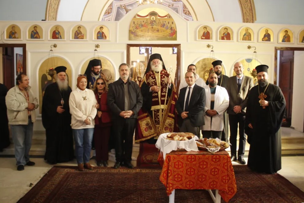 Ο Μακαριώτατος ευχήθηκε τα “χρόνια πολλά” στους εορτάζοντες, μεταξύ των οποίων ο Γενικός Πρόξενος κ. Ιωάννης Πυργάκης και οι ιεροψάλτες κ. Ιωάννης Ράπτης και κ. Ιωάννης Γενειατάκης. Οι βυζαντινοί απεδόθησαν εξαιρετικά απ΄ τον εορτάζοντα Γενικό Πρόξενο με την αρωγή του κ. Γενειατάκη.