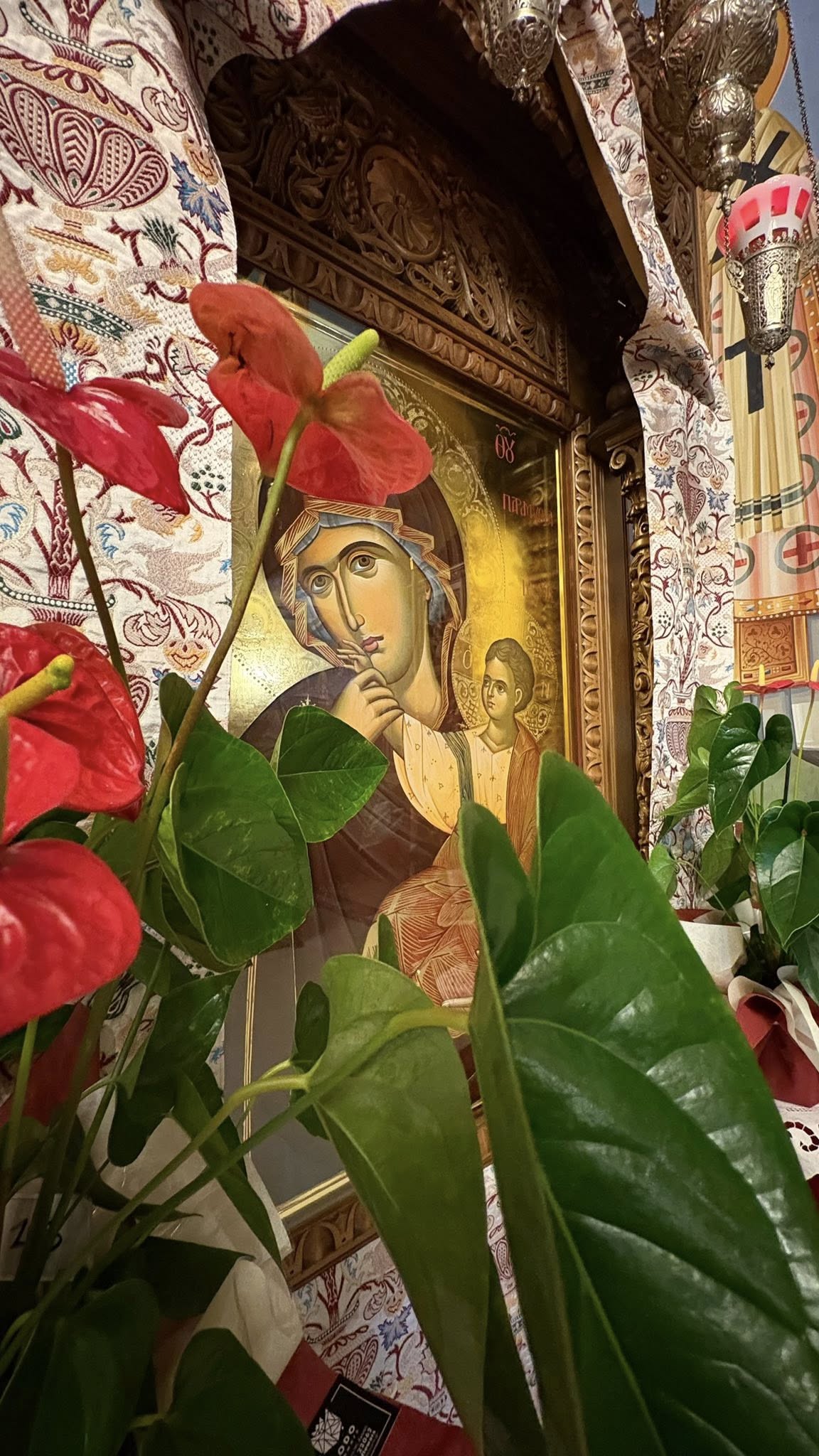 Ο Εφημέριος Πρωτ. Πέτρος Αθανασόπουλος τέλεσε τις ιερές ακολουθίες του Εσπερινού με τη λιτή κατά την αγιορειτική τάξη, τον Όρθρο, και την Θεία Λειτουργία και μίλησε επίκαιρα για το πρόσωπο της Παναγίας σύμφωνα με την ευαγγελική περικοπή καθώς και για το θαύμα που συνδέεται με το ιερό εικόνισμα.