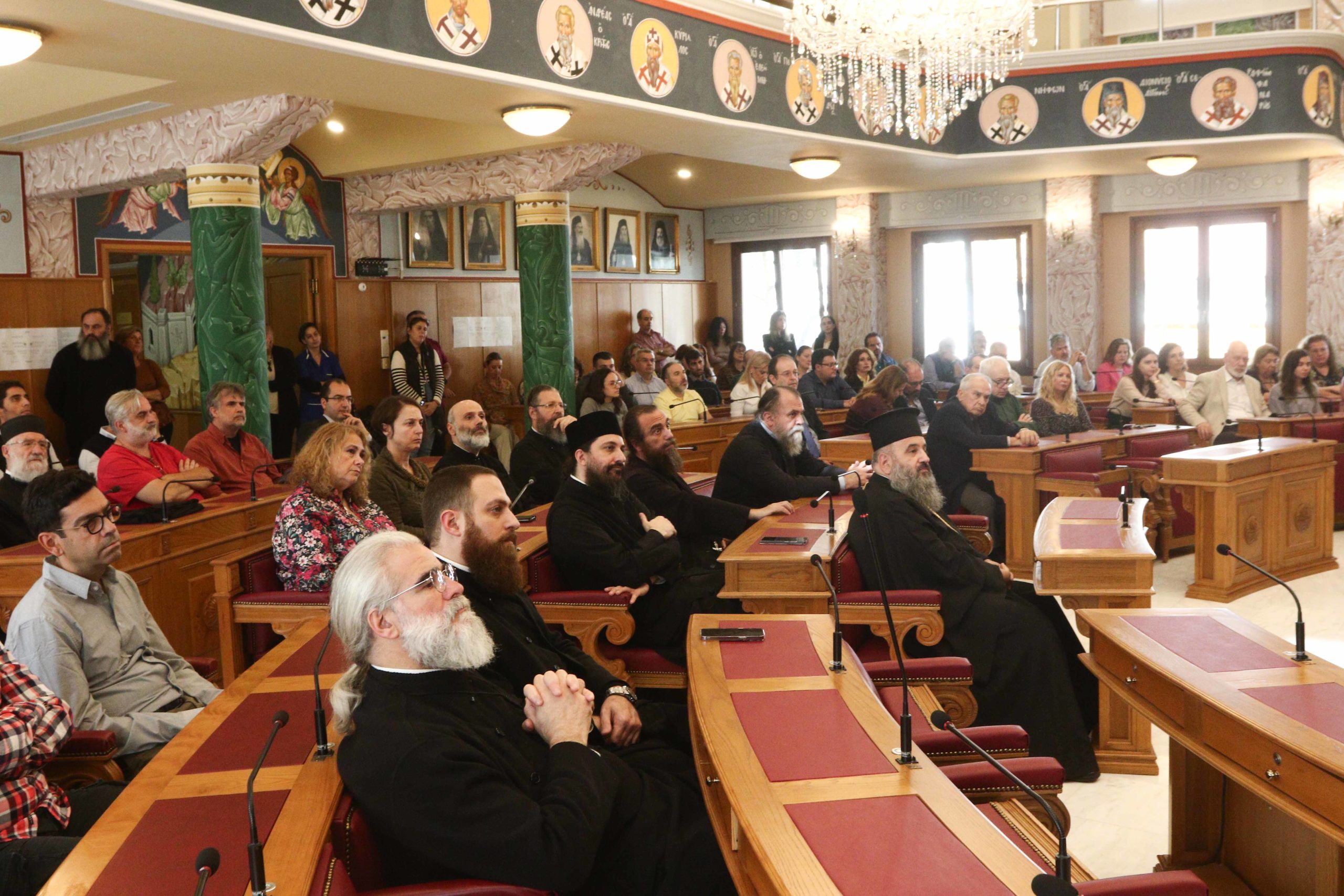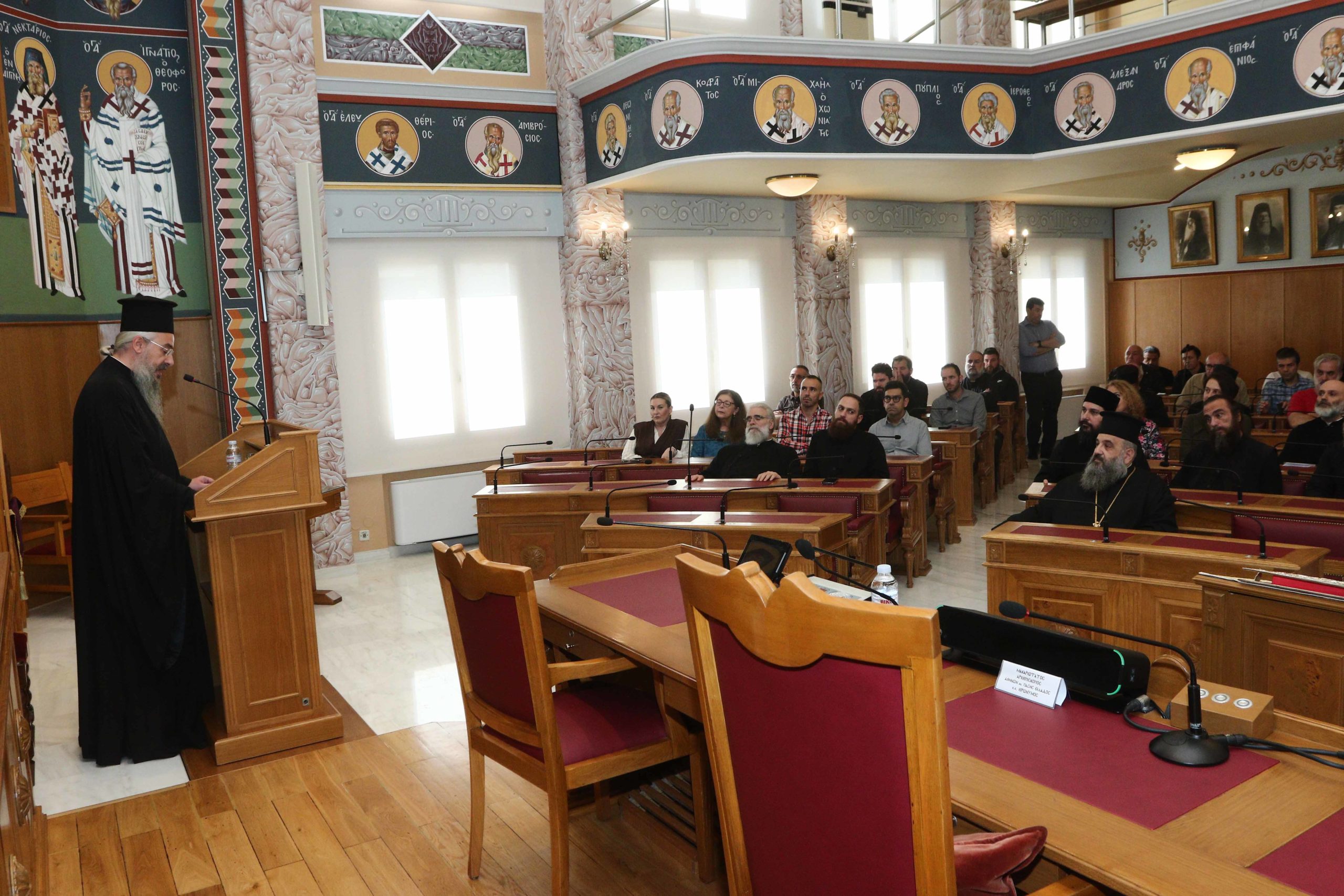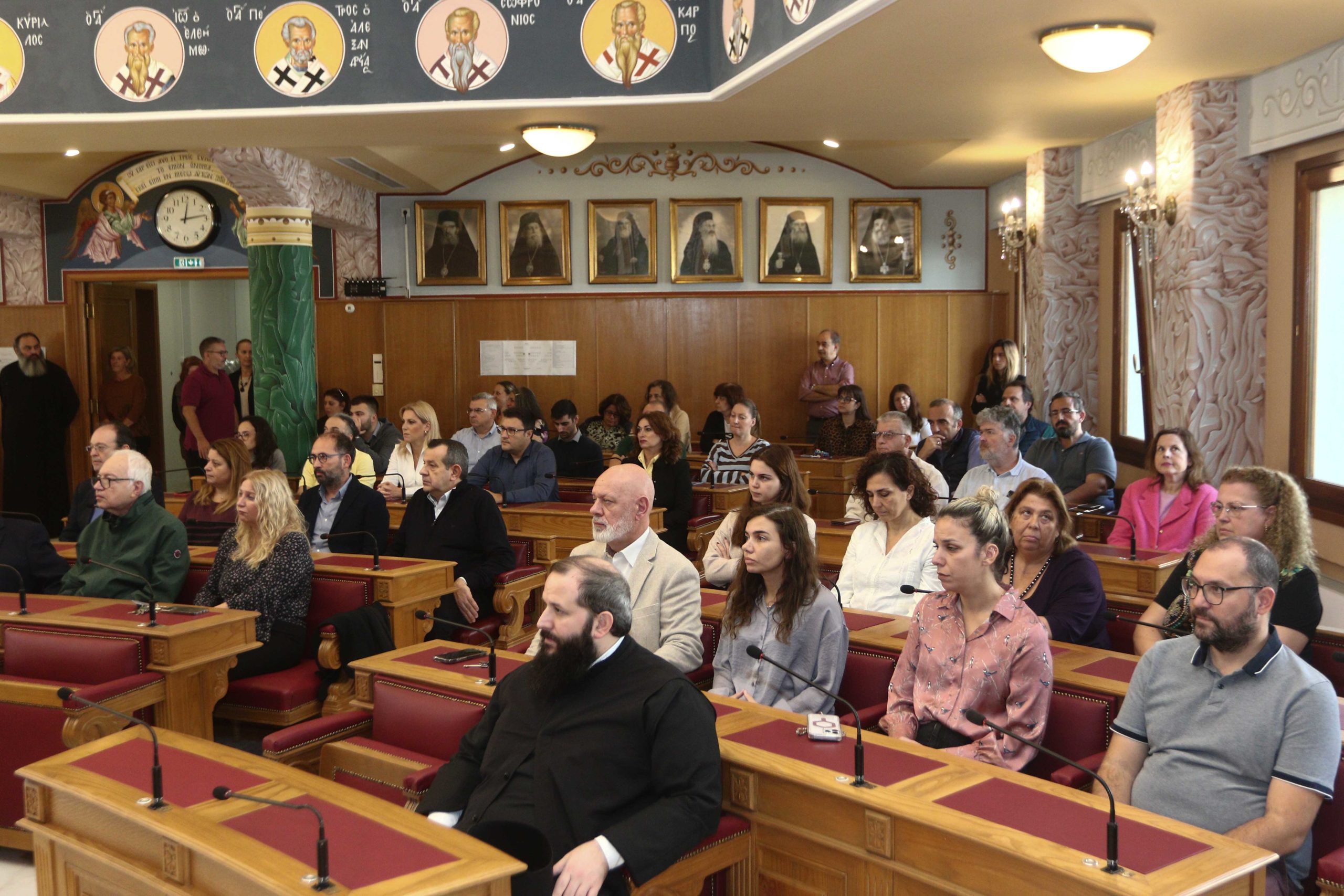 Κατά την ως άνω εκδήλωση, στην οποία παρέστησαν ο Αρχιγραμματεύς της Ιεράς Συνόδου της Εκκλησίας της Ελλάδος, Θεοφιλέστατος Επίσκοπος Σκιάθου κ. Ιωάννης, ο Διευθυντής Δημοσιονομικού Ελέγχου κ. Διονύσιος Γιαννακόπουλος, κληρικοί και λαϊκοί συνοδικοί υπάλληλοι όλων των Συνοδικών Υπηρεσιών, ομίλησε ο Γραμματεύς της Συνοδικής Επιτροπής Εκκλησιαστικής Εκπαιδεύσεως και Επιμορφώσεως του Εφημεριακού Κλήρου και της Ειδικής Συνοδικής Επιτροπής Λειτουργικής Αναγεννήσεως κ. Σάββας Ζέρβας, με θέμα: “Χαίρε σκέπη του κόσμου, πλατυτέρα νεφέλης”.