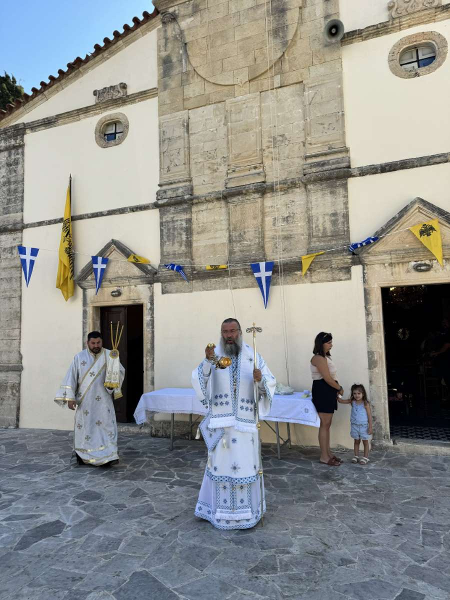 Το απόγευμα της Τρίτης, 26ης Αυγούστου 2025, ο Σεβασμιώτατος μετέβη στον πανηγυρίζοντα Ιερό Ναό Αγίου Φανουρίου της Ενορίας Αχλαδέ Μυλοποτάμου, όπου χοροστάτησε κατά τον Πανηγυρικό Εσπερινό, συμπαραστατούμενος από κληρικούς της Ιεράς Μητροπόλεως, και αναφέρθηκε στη μαρτυρία του Αγίου Μεγαλομάρτυρος Φανουρίου στο σύγχρονο κόσμο, συγχαίροντας τους πολυπληθείς προσκυνητές από την ευρύτερη περιοχή για τη συμμετοχή τους.