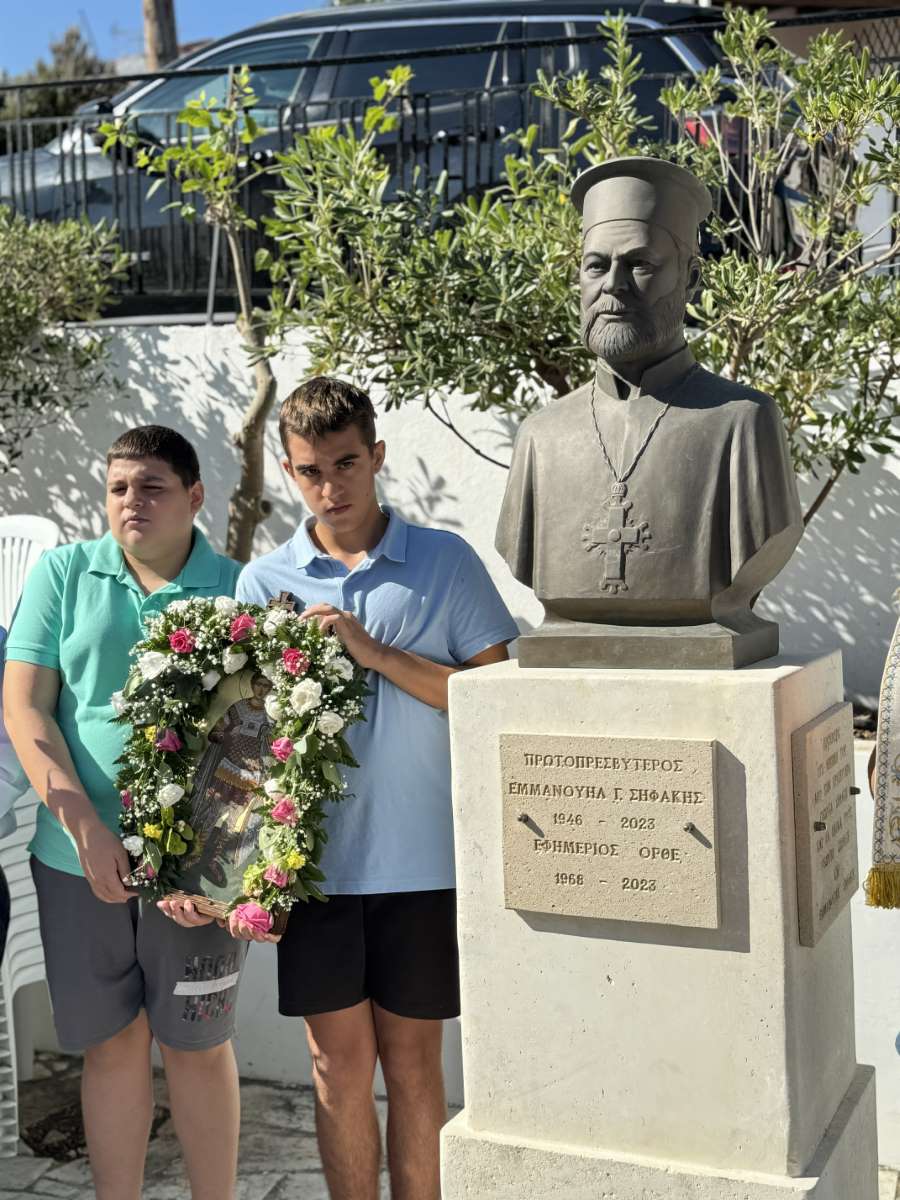 Επίσης, προ της απολύσεως της Θείας Λειτουργίας, ο Σεβασμιώτατος τέλεσε επιμνημόσυνη δέηση ενώπιον της προτομής του επί σειρά πολλών ετών δραστήριου Εφημερίου της Ενορίας Ορθέ, αοιδίμου Πρωτοπρεσβυτέρου Εμμανουήλ Σηφάκη.