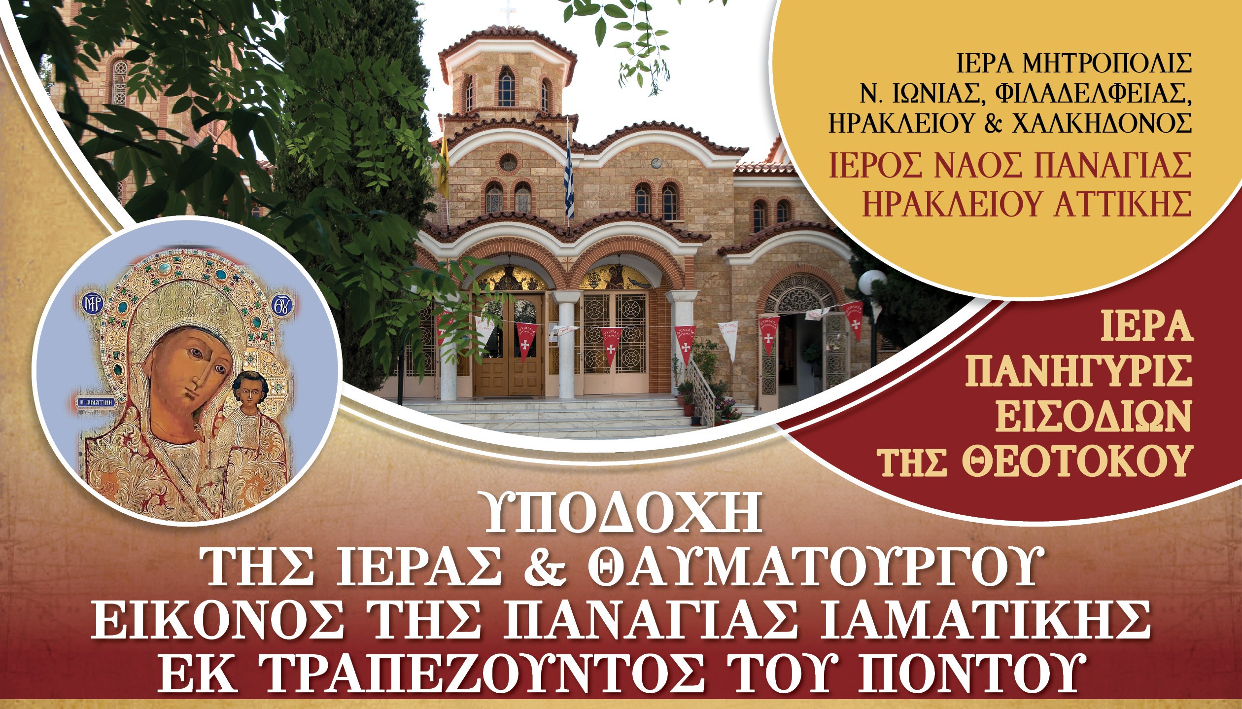 Εορτή Εισοδίων της Θεοτόκου και υποδοχή θαυματουργού Εικόνος Παναγίας της Ιαματικής εκ Τραπεζούντος του Πόντου στο Ηράκλειο Αττικής