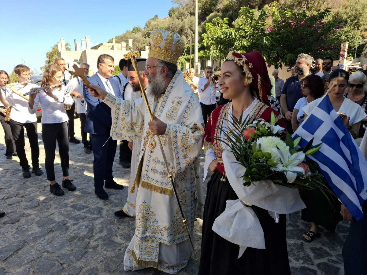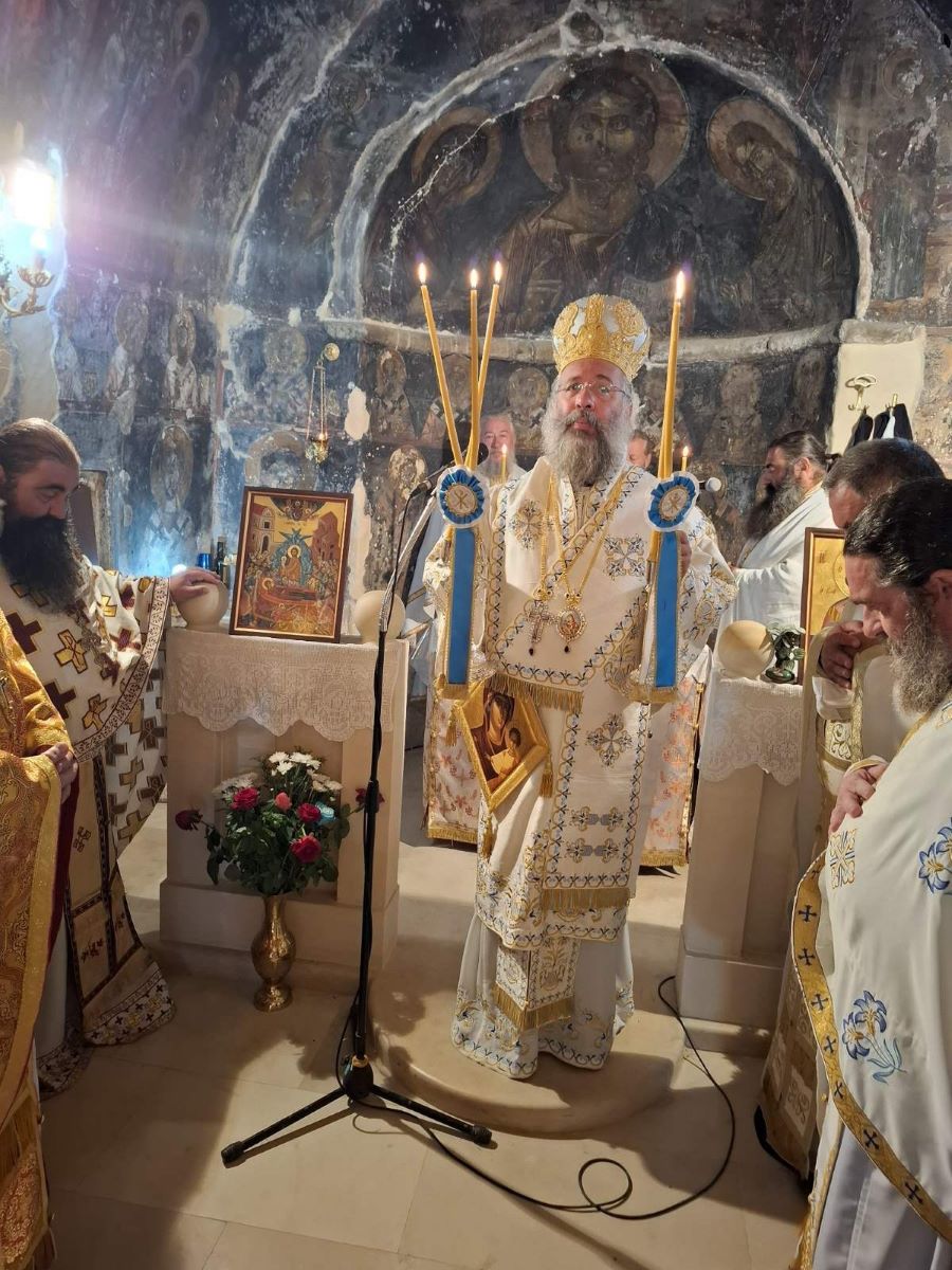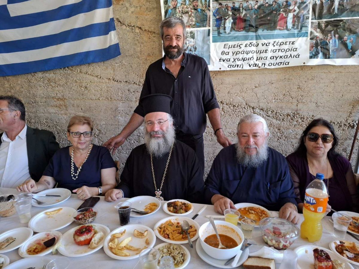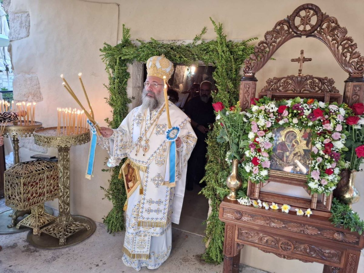 Ο Σεβασμιώτατος, στην προσλαλιά του, αναφέρθηκε στο Πρόσωπο της Υπεραγίας Θεοτόκου, καθώς και στην τιμή προς τους ήρωες που θυσιάστηκαν για την πίστη, την πατρίδα και την ελευθερίας, και συνεχάρη όλους τους παράγοντες του χωριού για την ωραία αυτή ετήσια διοργάνωση, ιδιαιτέρως δε τα παιδιά του Πολιτιστικού Συλλόγου, που με τις κρητικές ενδυμασίες λιτάνευσαν την πρεπιά της Κρήτης.