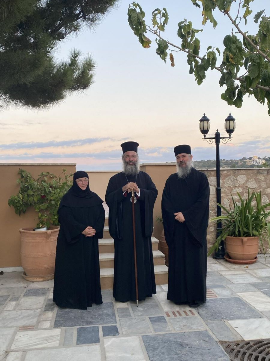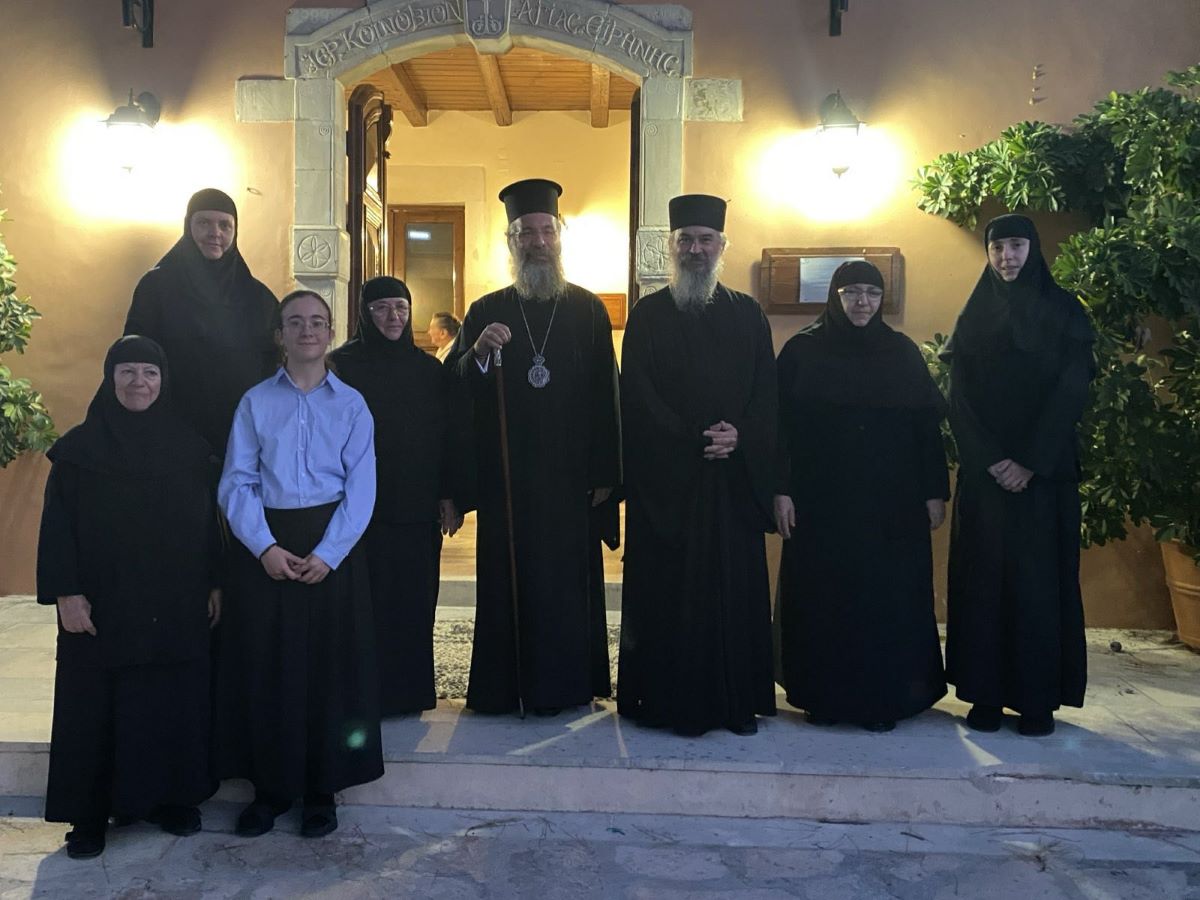 Το απόγευμα της Τρίτης, 23ης Σεπτεμβρίου 2025, ο Σεβασμιώτατος Μητροπολίτης Ρεθύμνης και Αυλοποτάμου κ. Πρόδρομος μετέβη στην Ιερά Μονή Αγίας Ειρήνης Ρεθύμνης και παρέστη στον Εσπερινό, μετά το πέρας του οποίου ευχήθηκε καταλλήλως στην εορτάζουσα τα ονομαστήριά της Καθηγουμένη της Μονής Γερόντισσα Θέκλα, ευχόμενος πάντοτε να έχει εύορκη διακονία στο Ιερό τούτο Μοναστήρι της Τοπικής μας Εκκλησίας.