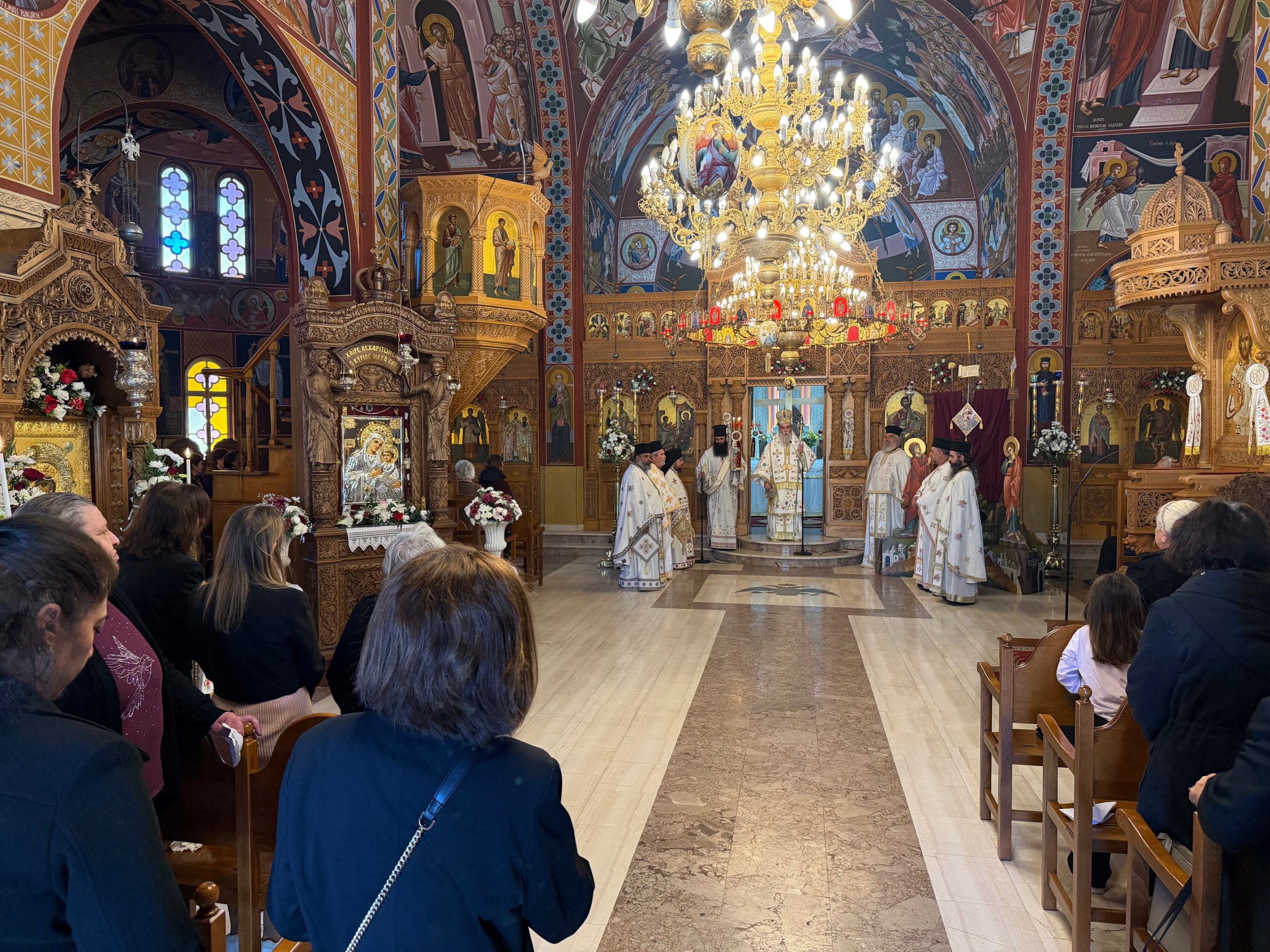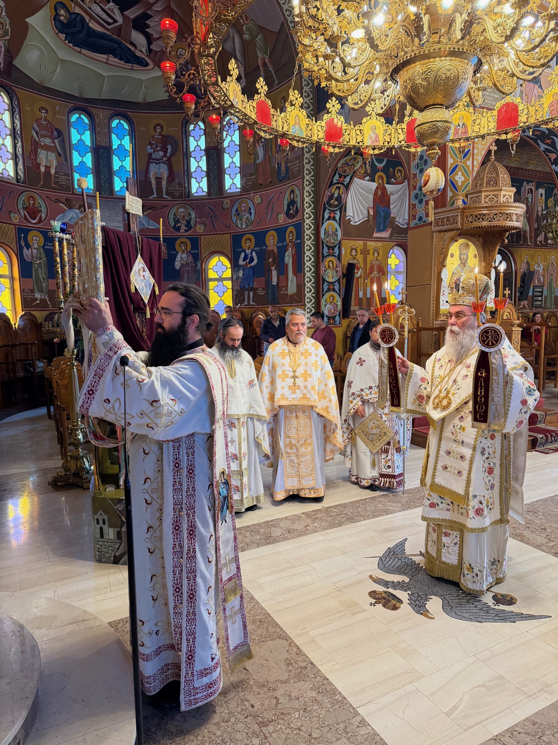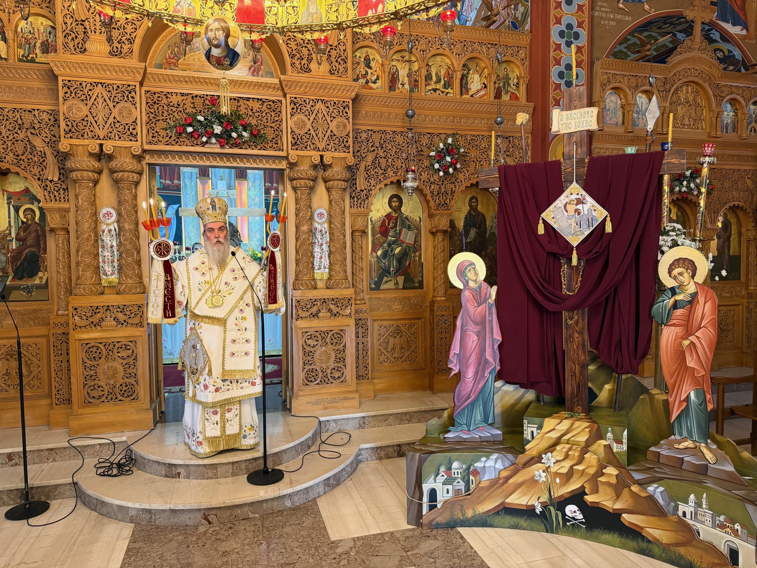 «Η πίστη δεν είναι απλή αποδοχή. Είναι εμπειρία είναι σχέση, είναι συνάντηση με τον Αναστημένο Χριστό». Αναφερόμενος στην εορτή της Παναγίας της Βηματαρίσσης ευχαρίστησε «…τον σεβαστό Καθηγούμενο της Ιεράς Μεγίστης Μονής Βατοπαιδίου, Γέροντα Εφραίμ, δια το δώρο του Ουρανού που χάρισε στην Ιερά Μητρόπολή μας, πιστό αντίγραφο εκ της Θαυματουργού Εικόνος της Παναγίας της Βηματαρίσσης, η Οποία φυλάσσεται στην Ιερά Μεγίστη Μονή Βατοπαιδίου».
