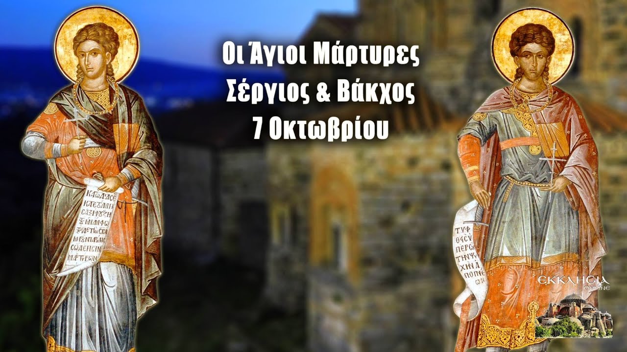 7 Οκτωβρίου η Εκκλησία μας τιμά τη μνήμη των Αγίων Σεργίου και Βάκχου των Μεγαλομαρτύρων.