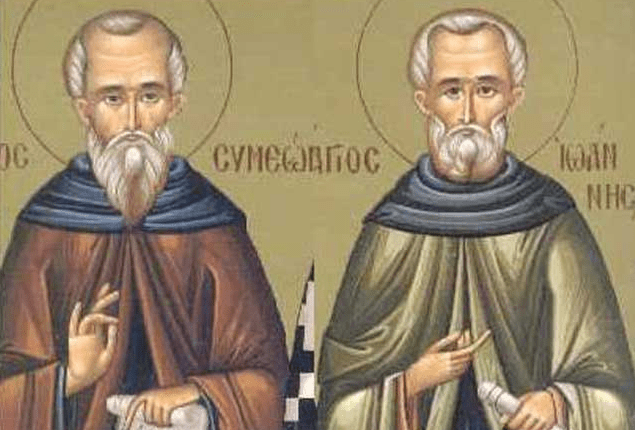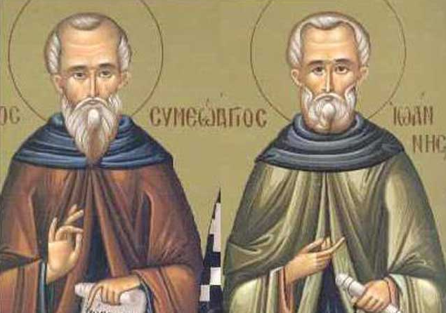 Οι Όσιοι πατέρες Συμεών και Ιωάννης, καταγόταν από την Έδεσσα της Συρίας και έζησαν στα χρόνια του βασιλιά Ιουστίνου του νέου (περί το 518 μ.Χ.). Ήταν πολύ φίλοι και έτσι αποφάσισαν να πάνε μαζί στα Ιεροσόλυμα να προσκυνήσουν τούς Αγίους Τόπους.